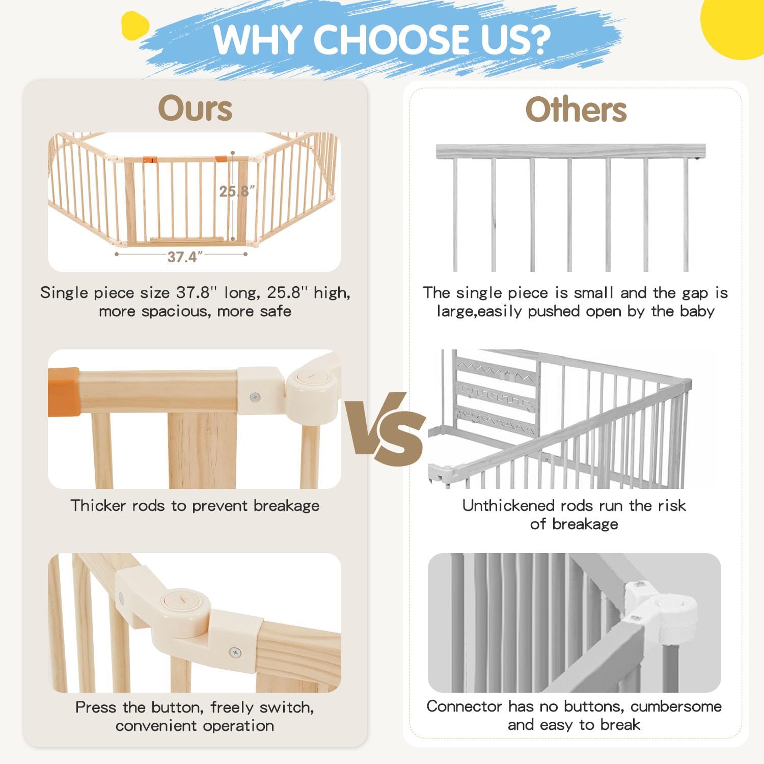 - Q: What materials is the playpen made from? A: The playpen is made from upgraded natural pine wood, which is odorless, colorless, and finely polished.
