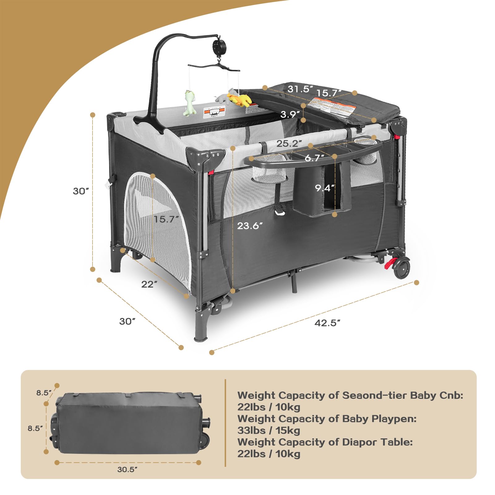 - Q: What is the maximum weight limit for the bassinet and playard? A: The bassinet is suitable for infants up to 22 pounds, while the playard can accommodate toddlers up to 33 pounds.