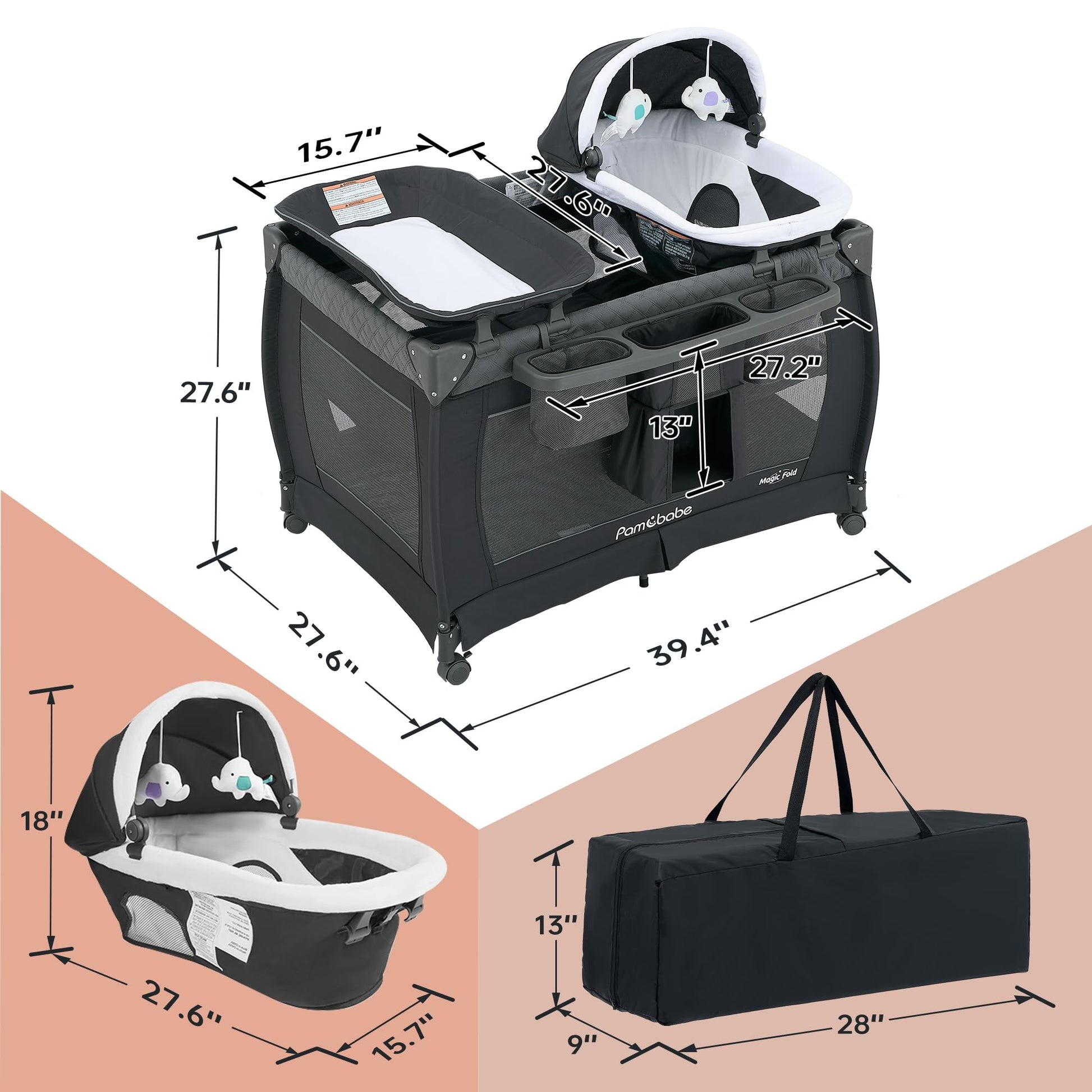 - Q: Does the playard have any storage options? A: Yes, the Pamo Babe Playard includes a partition storage bag that helps keep your baby's essentials organized and easily accessible.