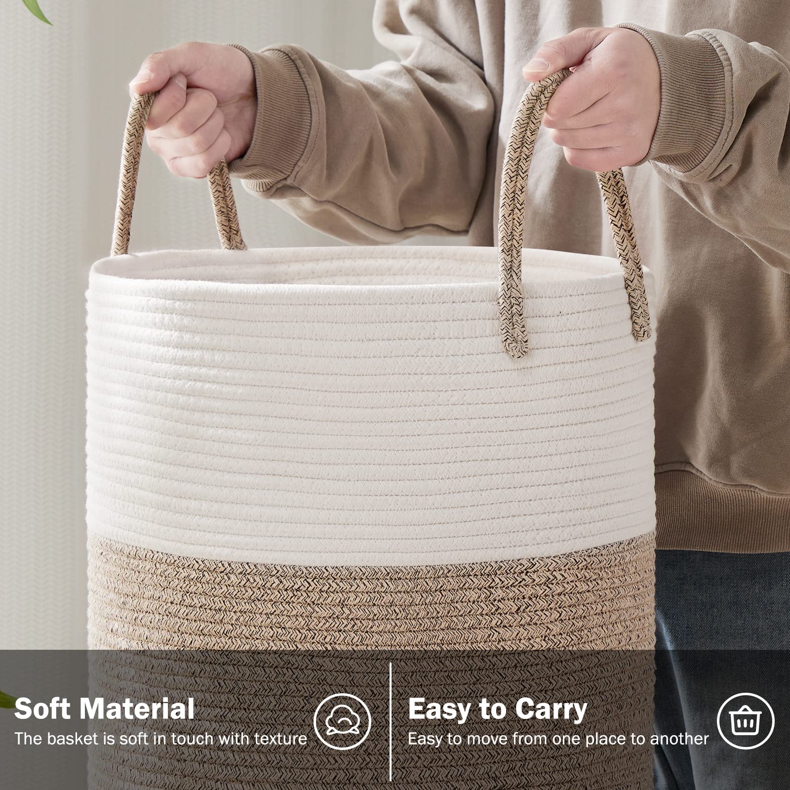 Youdenova Woven Rope Laundry Hamper Basket, 72L Tall Luandry Basket, Baby Nursery Hamper For Blanket Storage, Clothes Hamper For