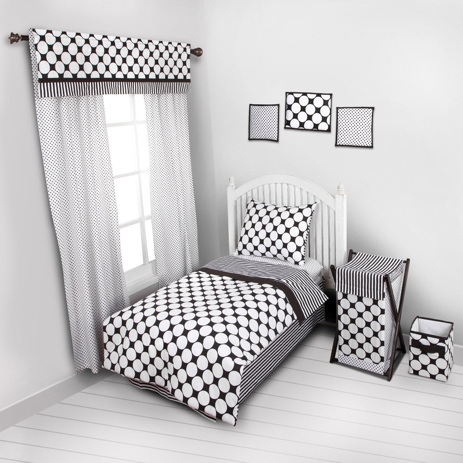 - Q: Can the Bacati Neck Roll be coordinated with other products? A: Yes, it can be coordinated with the rest of the Bacati Dots/pin Stripes Black/White Bedding Collection for endless mix and match possibilities.