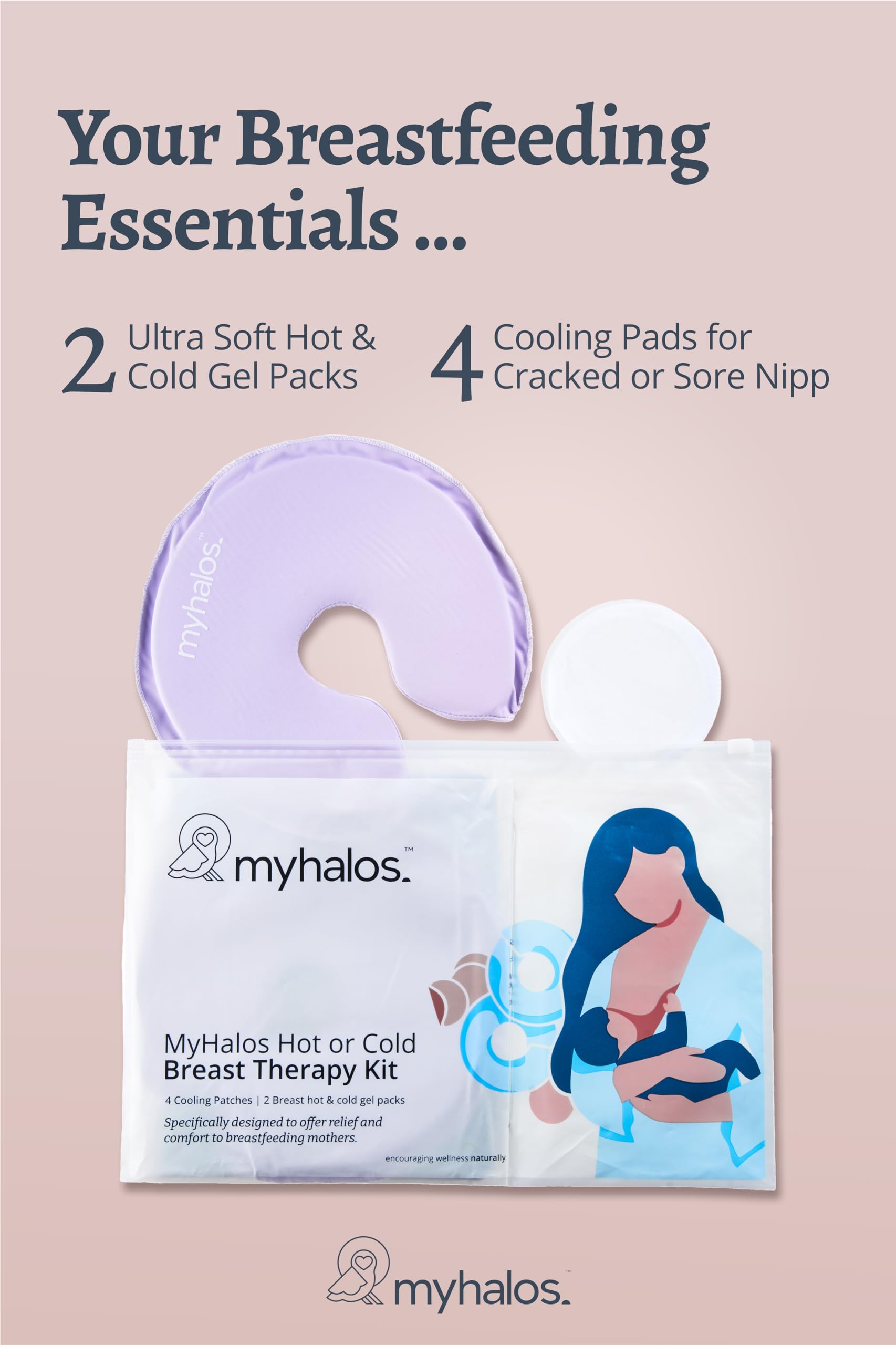 - Q: What is included in the MyHalos® Breast Therapy Pack? A: The MyHalos® Breast Therapy Pack includes 2 hot cold breast therapy packs and 4 hydrogel nipple pads designed for breastfeeding.