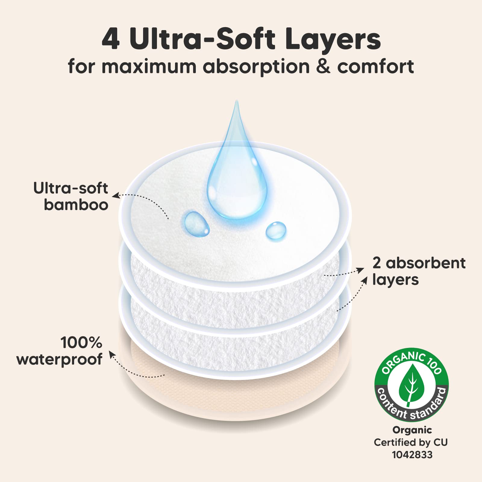 - Q: How do these pads prevent leakage? A: The pads feature an extra layer of bamboo for maximum absorption and a waterproof outer layer to prevent milk leakage onto outerwear.