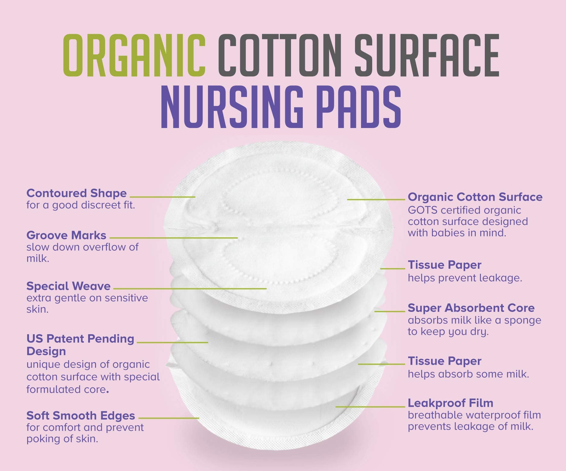 - Q: How do these nursing pads ensure comfort for breastfeeding moms? A: The uniquely woven organic cotton surface is ultra-smooth, providing comfort while maximizing absorption. The contoured shape and groove marks help promote a discreet fit.