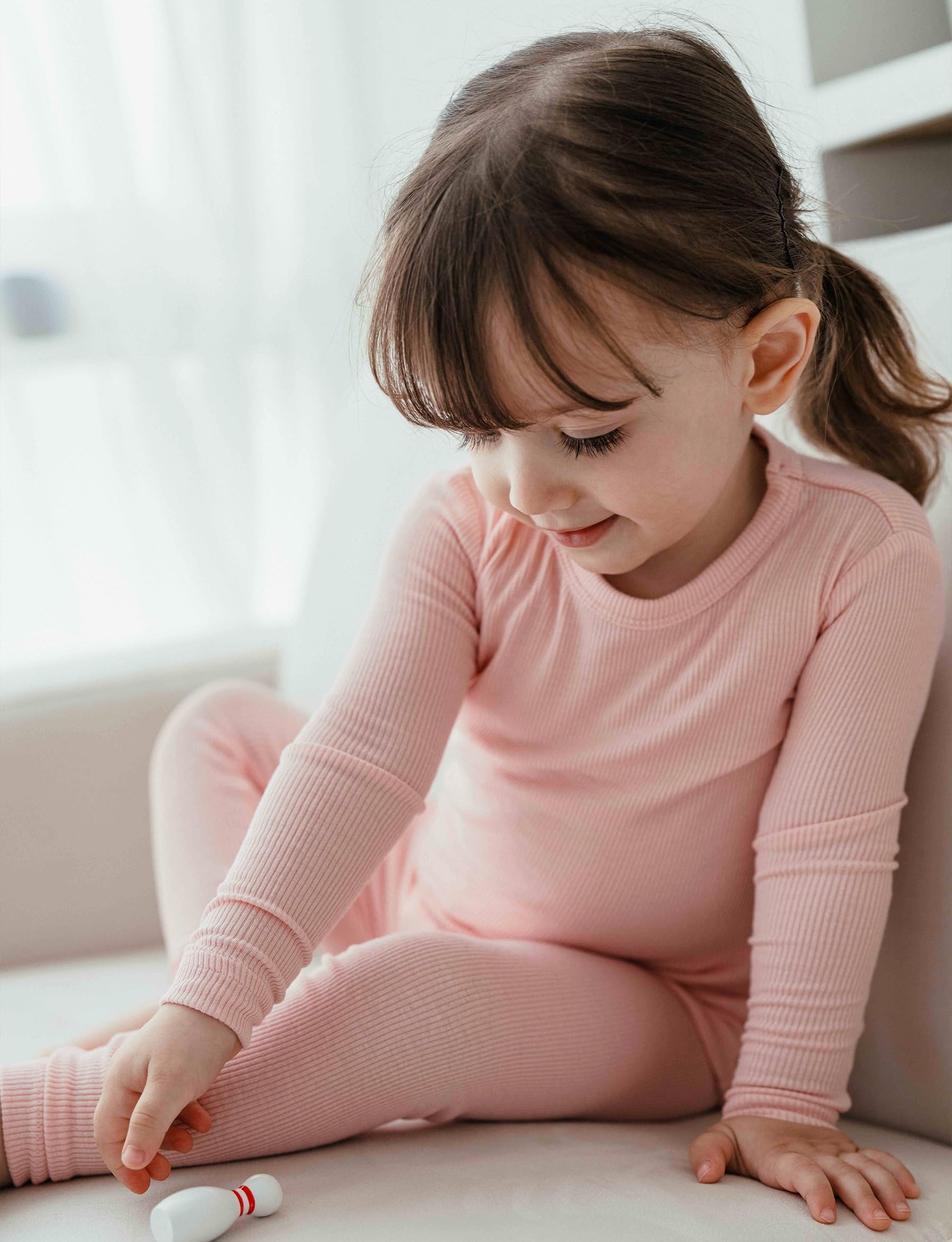 - Q: What makes this pajama set comfortable for children? A: The pajama set is designed with a comfortable and cozy ribbed knit fabric, providing a soft touch that is gentle on a child's skin.