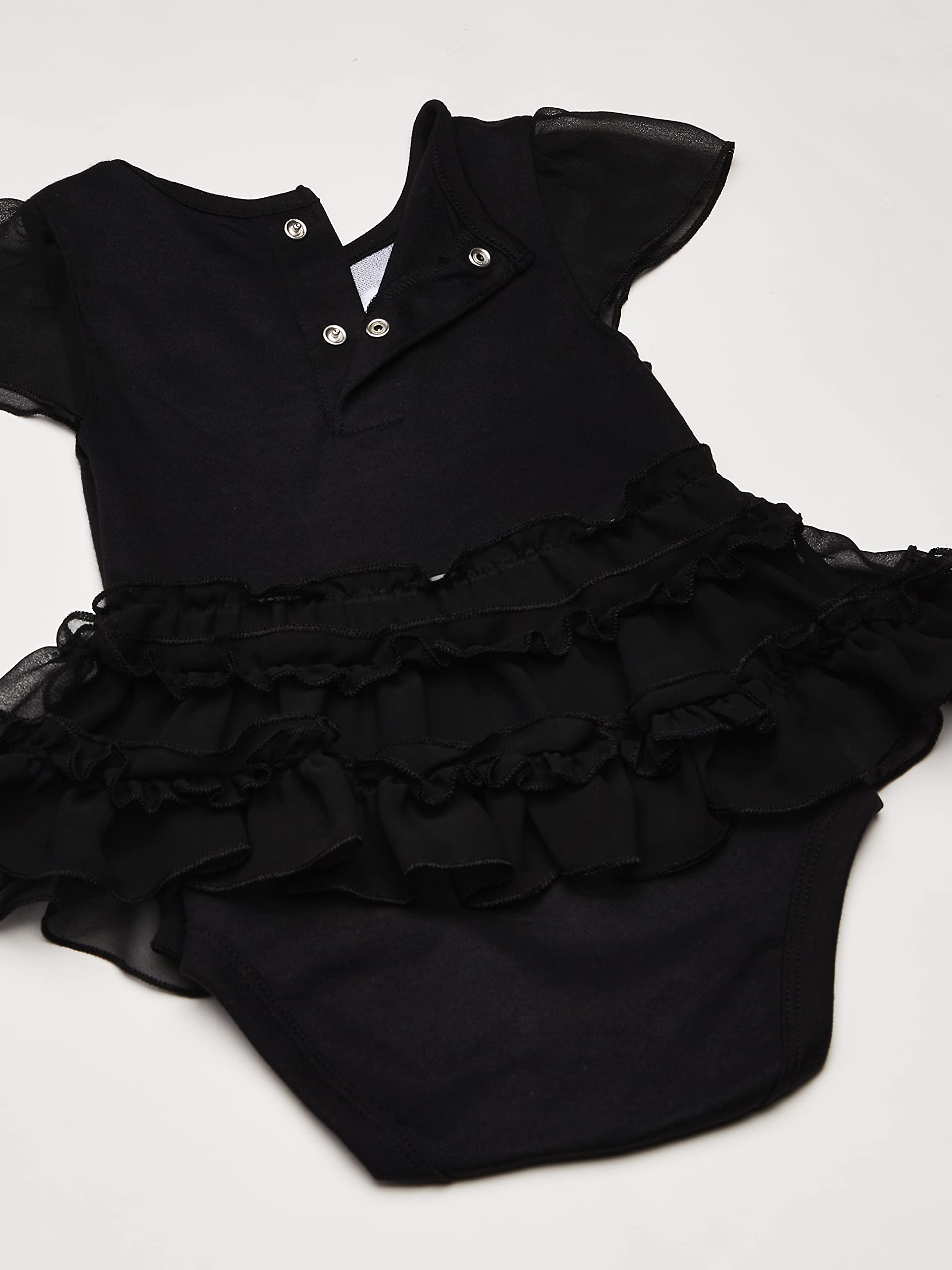 - Q: Does the bodysuit have any special design features? A: Yes, it features a sweet chiffon tutu skirt, a satin bow, and flutter sleeves for a charming look.