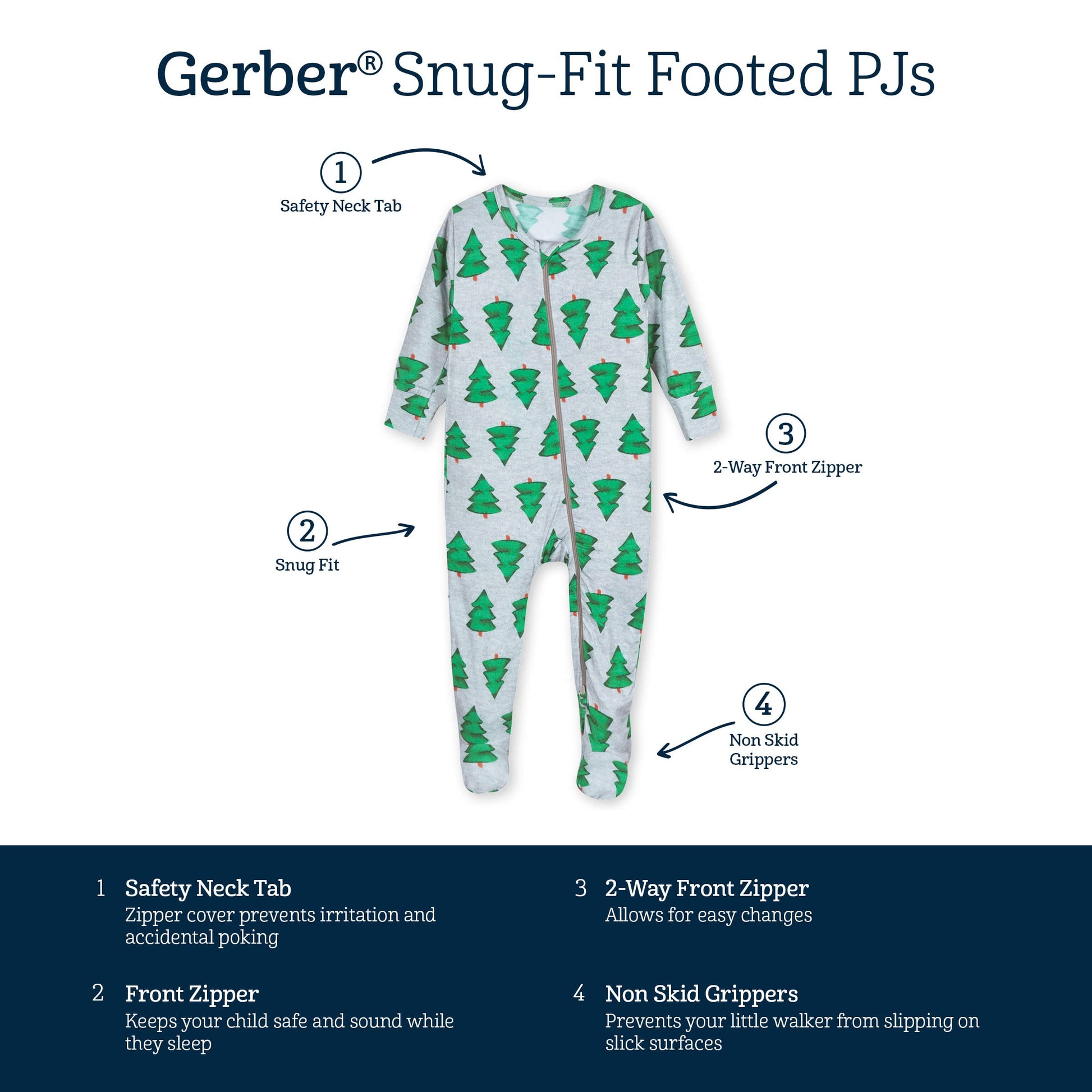Gerber Baby Girls Buttery-Soft Snug Fit Footed Pajamas With Viscose Made Eucalyptus And Toddler Sleepers, Spruce, 0-3 Months Us
