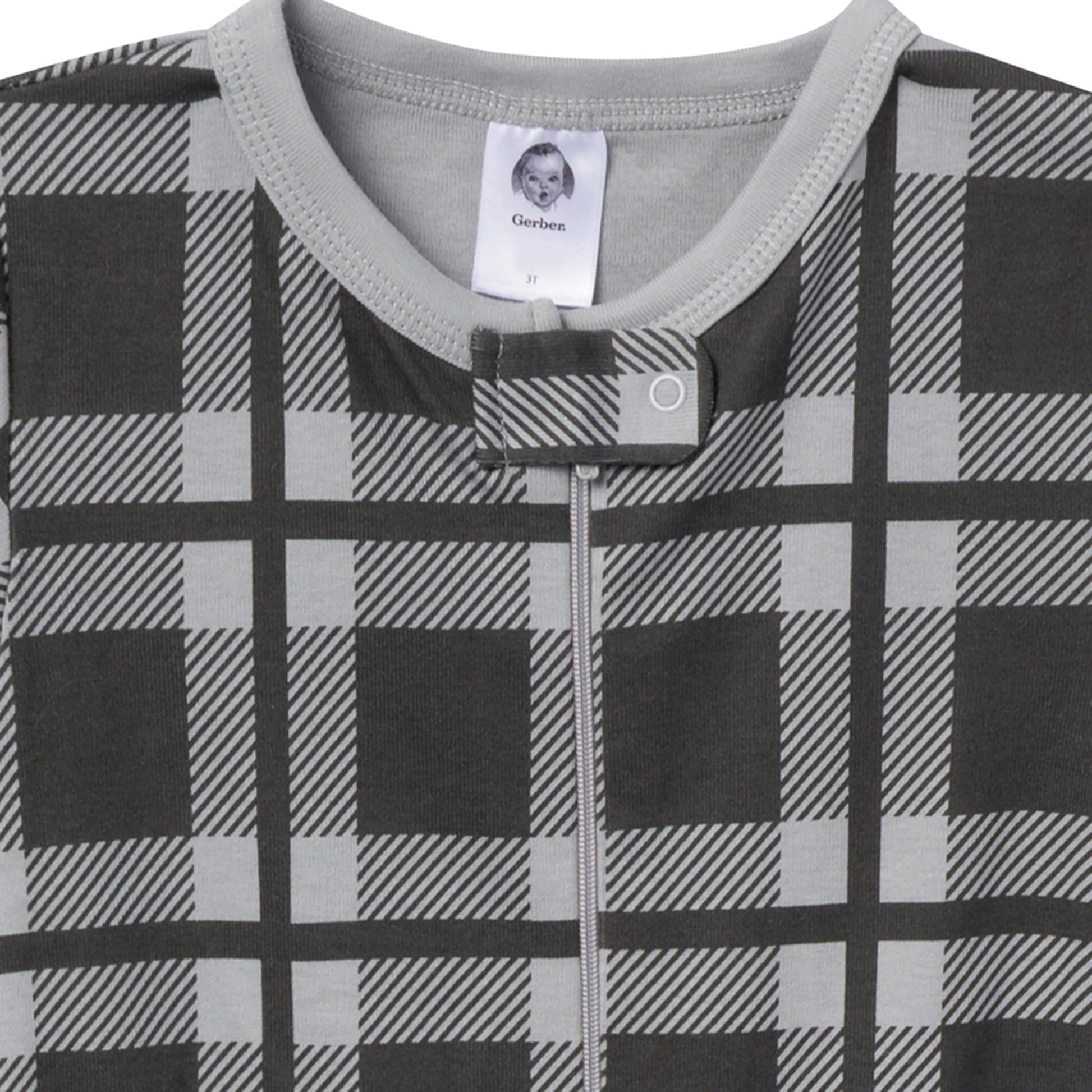 - Q: What features do the pajamas include? A: These pajamas feature a two-way zipper with a neckline guard for easy dressing and diaper changes, as well as non-skid soles for extra traction.