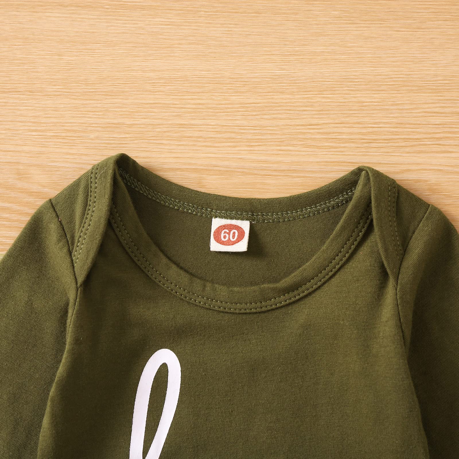- Q: What is the design style of the romper? A: The romper features a classic o-neck design with long sleeves and a letter print, combining style with comfort for your baby.
