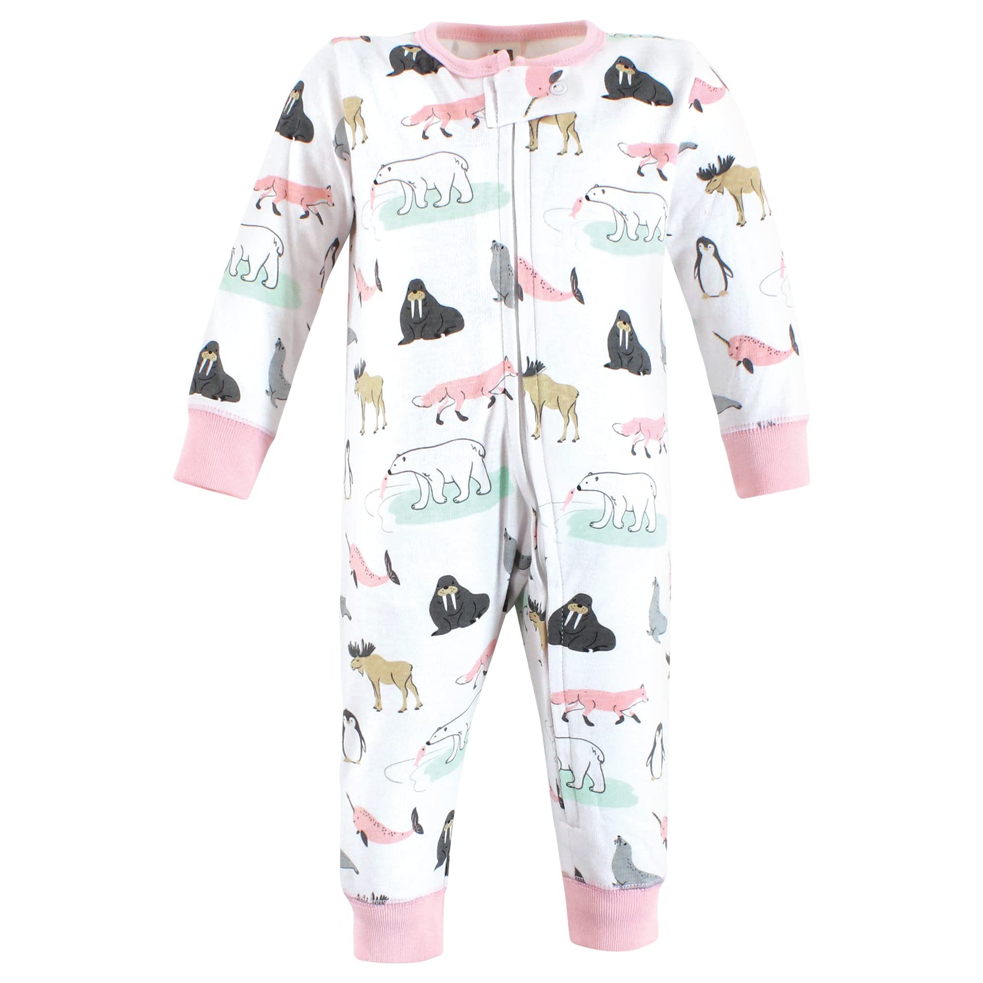 - Q: What design features does the Hudson Baby Cotton Sleep and Play have? A: The Hudson Baby Cotton Sleep and Play features a cute Arctic Animals design, perfect for baby girls.