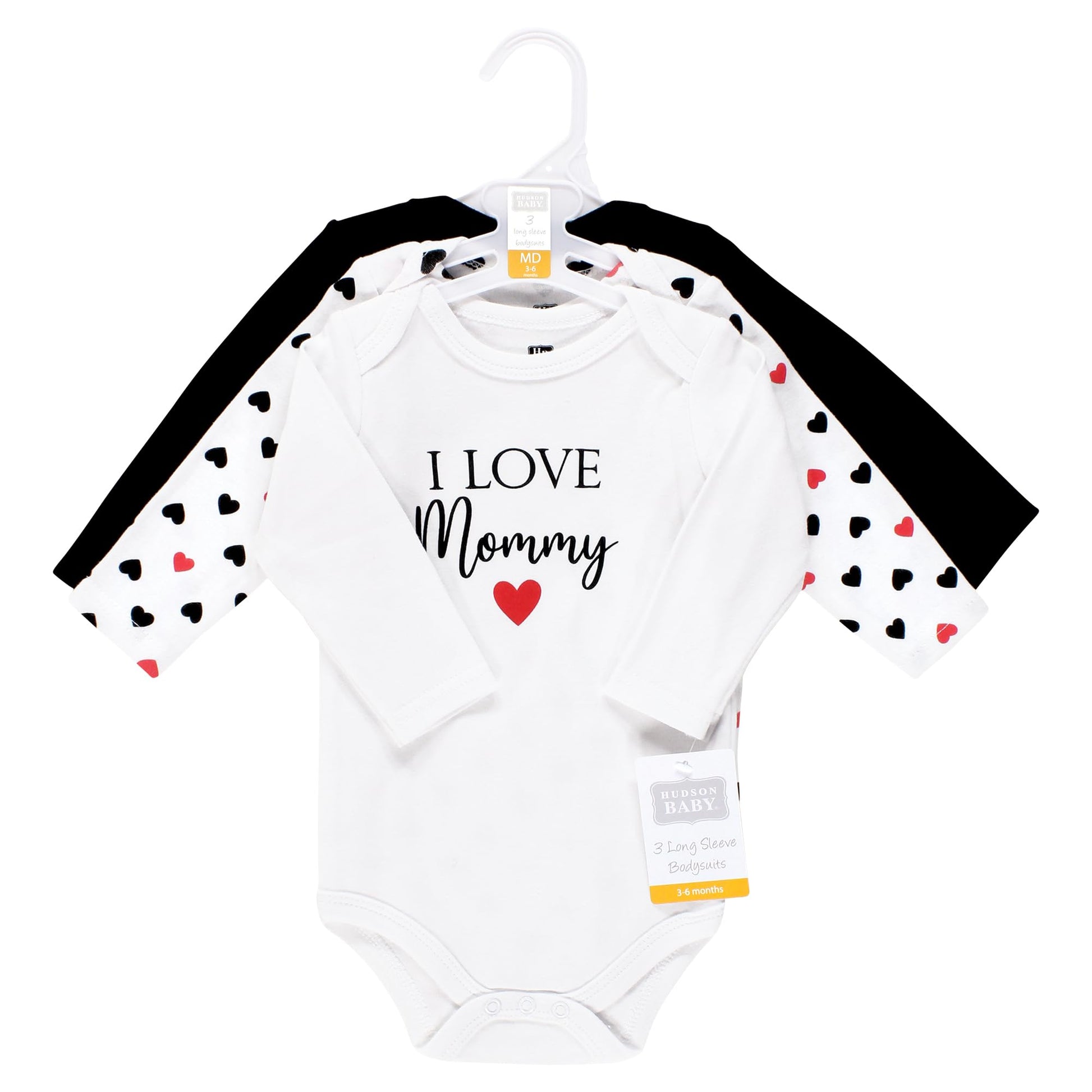 - Q: Do the bodysuits come in different colors or prints? A: Yes, Hudson Baby bodysuits feature a variety of adorable prints, embroideries, and colors, including the Girl Mommy Red Black design.