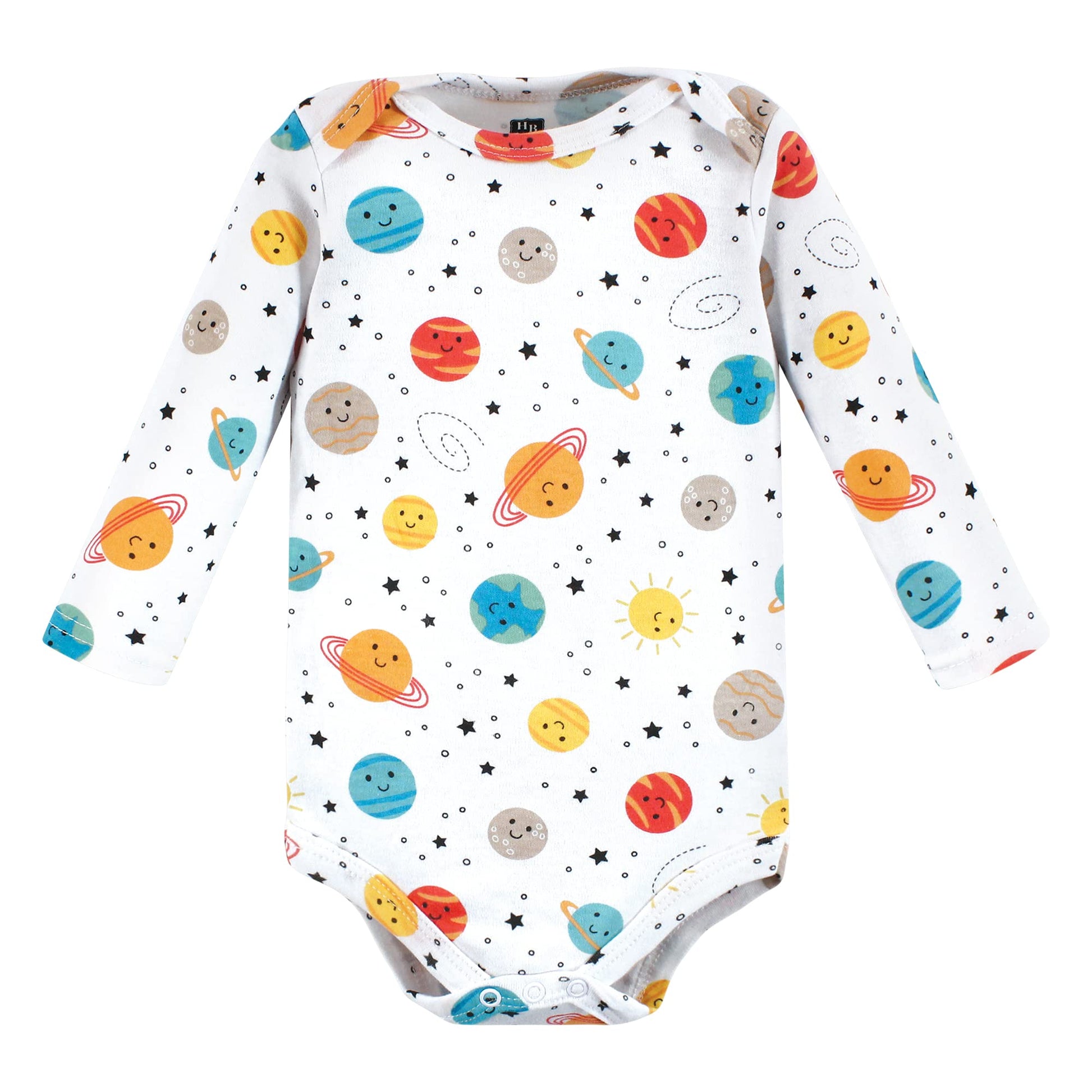 - Q: How many bodysuits are included in the Hudson Baby set? A: The Hudson Baby set includes seven coordinating long-sleeve bodysuits.