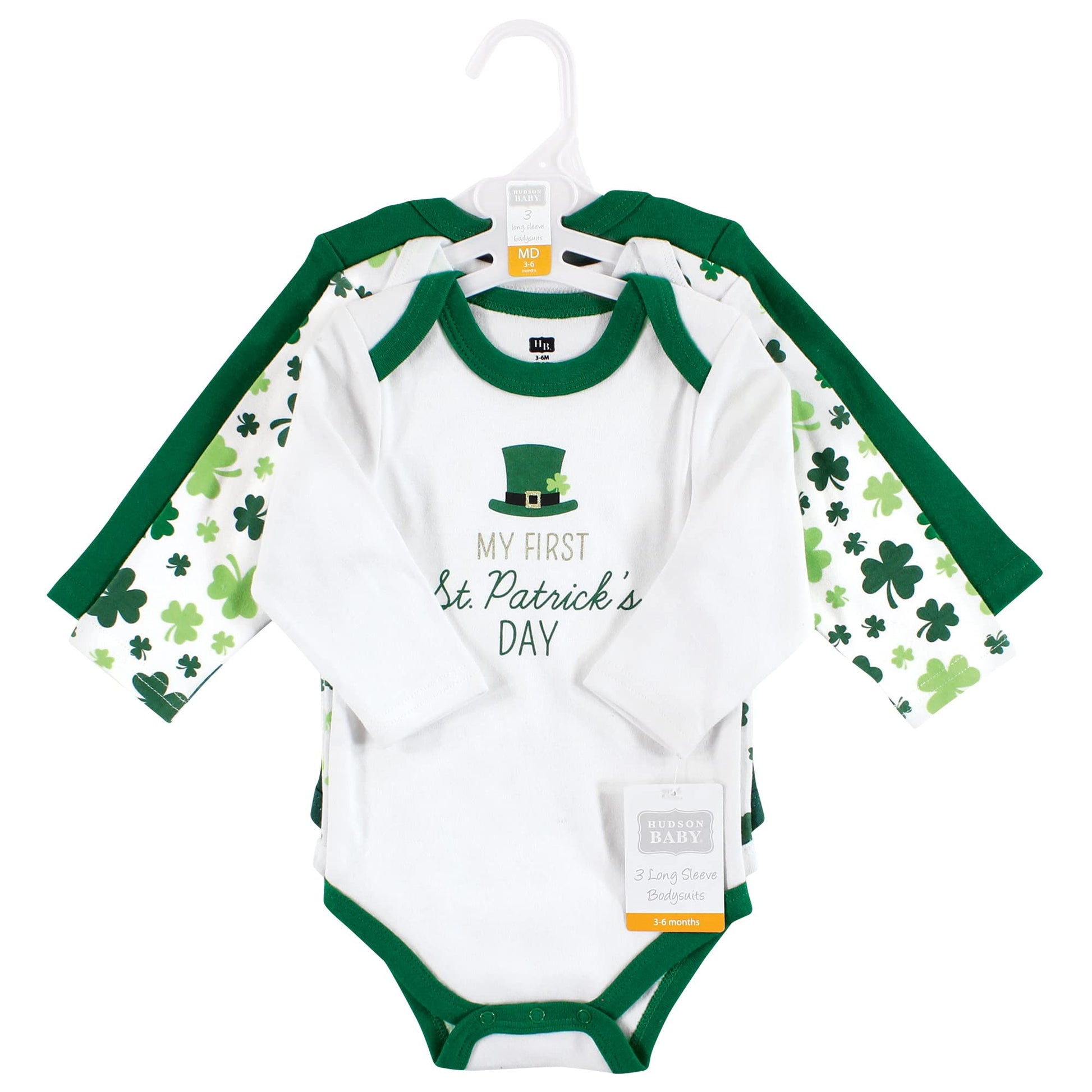 - Q: What features do the Hudson Baby bodysuits offer? A: They feature adorable prints, embroideries, stripes, and solids, providing a comfortable base layer for pairing with other clothing.