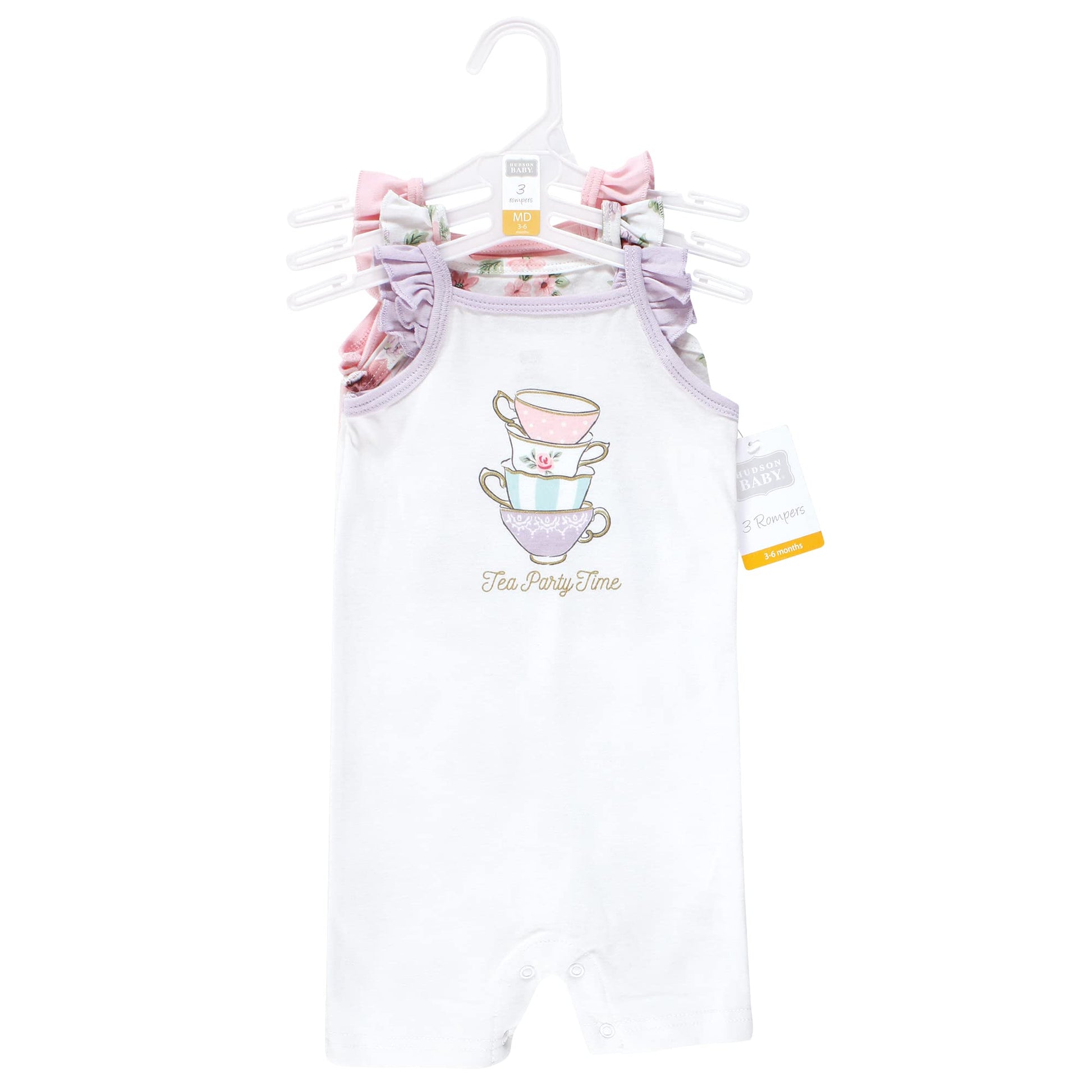 - Q: What colors or patterns are available for the rompers? A: These rompers come in a 'Tea Party' design, which adds a cute and playful touch.