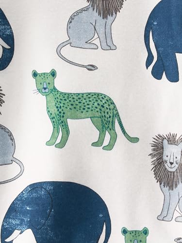 - Q: Do these pajamas have a specific print? A: Yes, the pajamas feature a fun blue safari animals print, making them visually appealing for children.