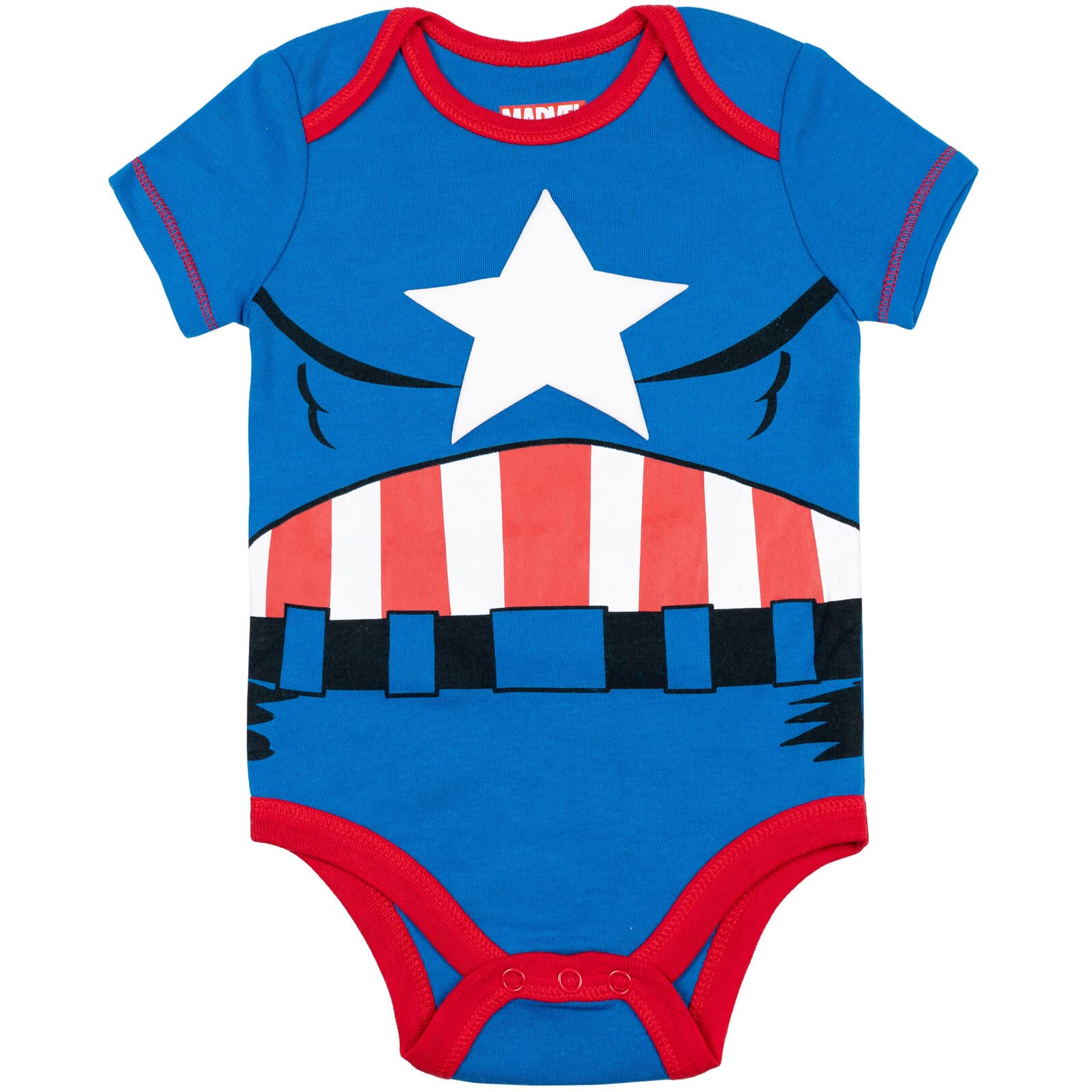 - Q: What types of designs can I expect on these bodysuits? A: The bodysuits feature playful character designs from the Marvel Avengers, including The Hulk, Spiderman, Iron Man, and Captain America.