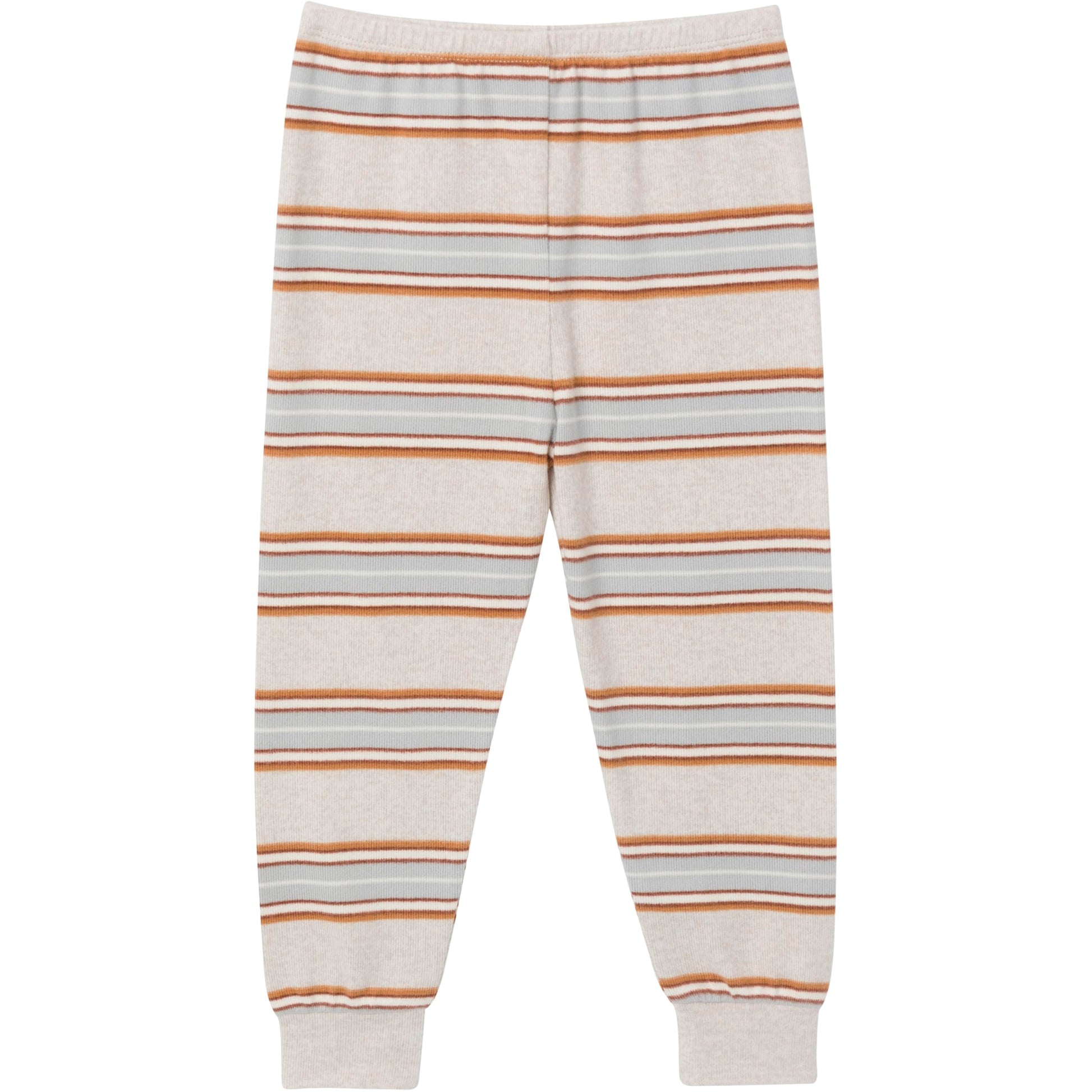 - Q: What color is the pajama set? A: The pajama set comes in an oatmeal heather stripe pattern.