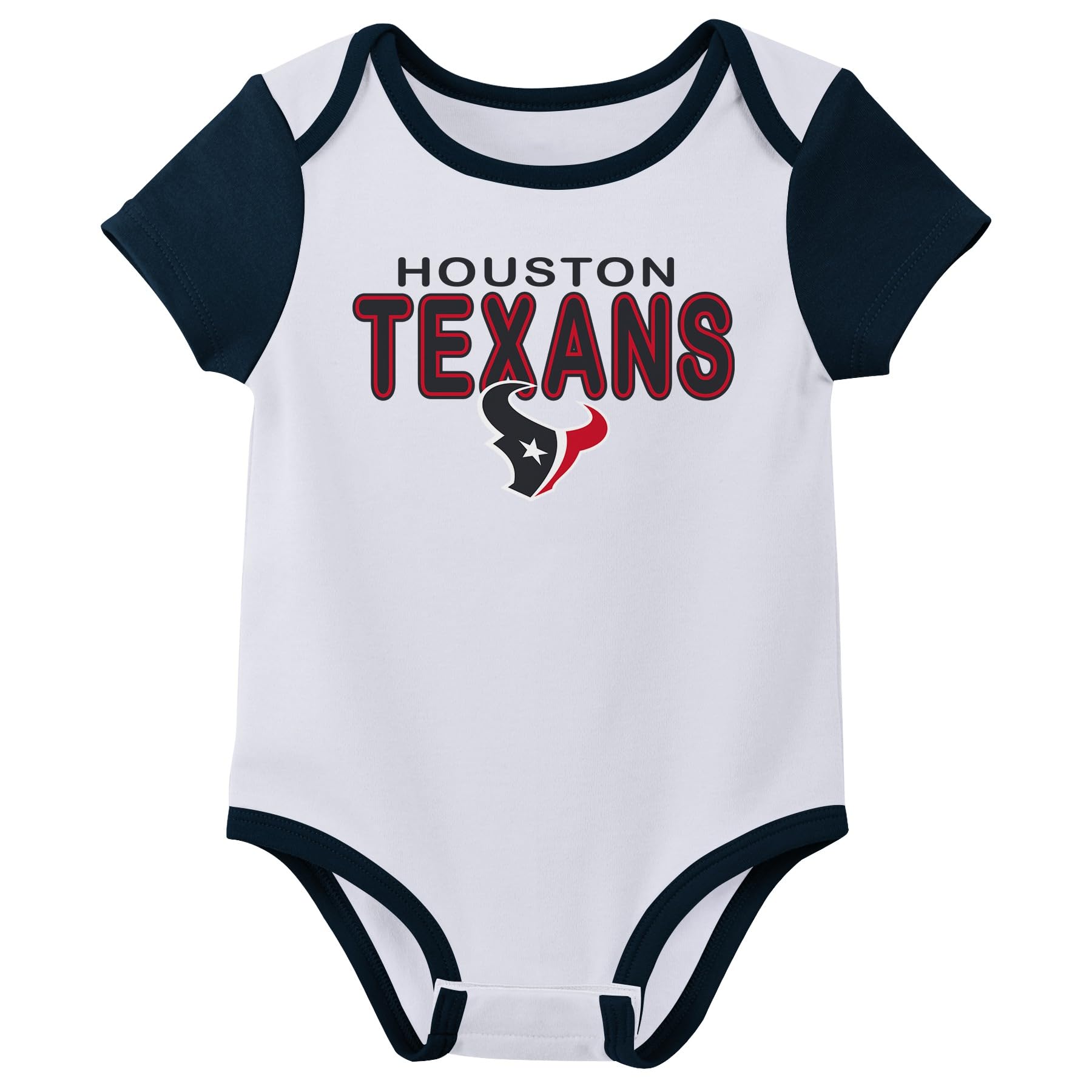 - Q: What teams are featured in this variety pack? A: The variety pack features bodysuits from the Houston Texans, showcasing the team's logos and colors.