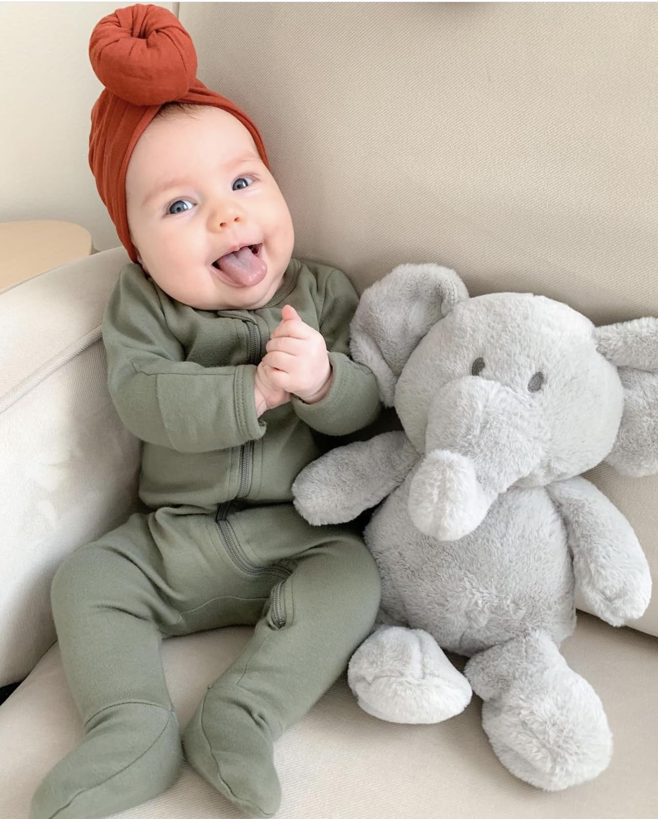 Owlivia Organic Cotton Baby Pajamas, Boys Girls 2-Pack Zip Front Sleep 'N Play, Footed Sleeper, Long Sleeve(Newborn, Olive Gree