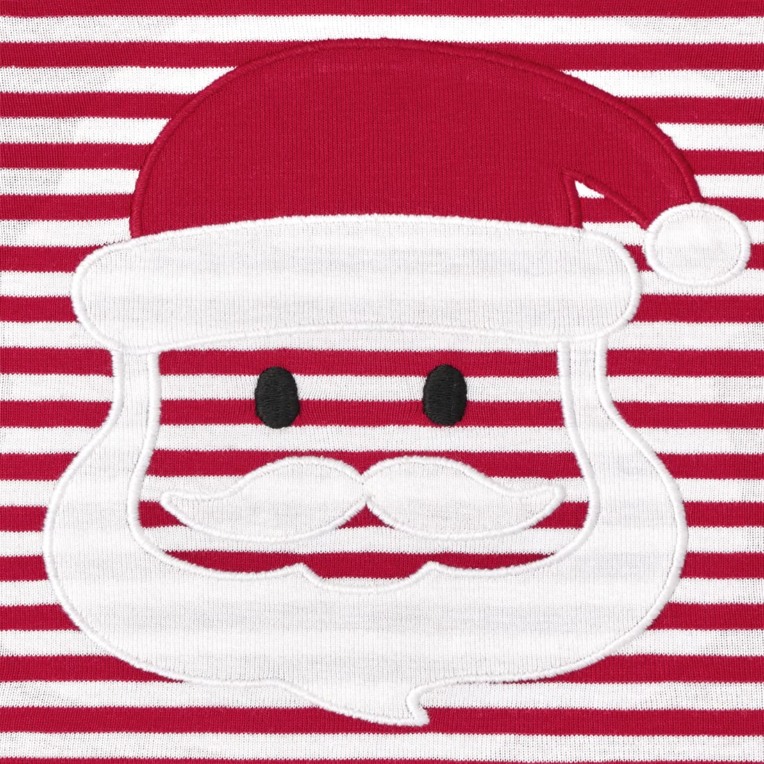 - Q: What features does the pajama top have? A: The pajama top features long sleeves, a rib-knit crew neck, sleeve cuffs, and a festive Santa graphic design.