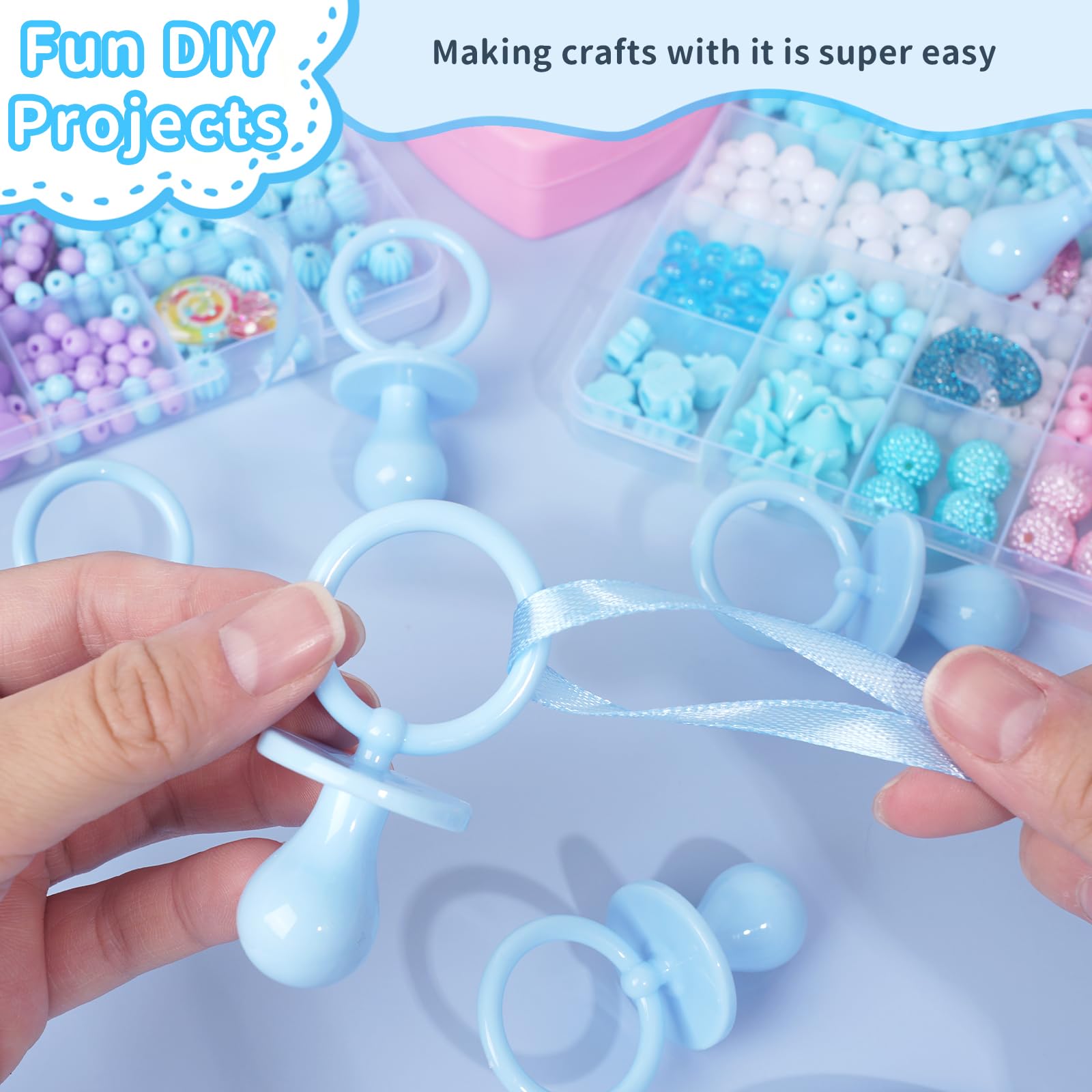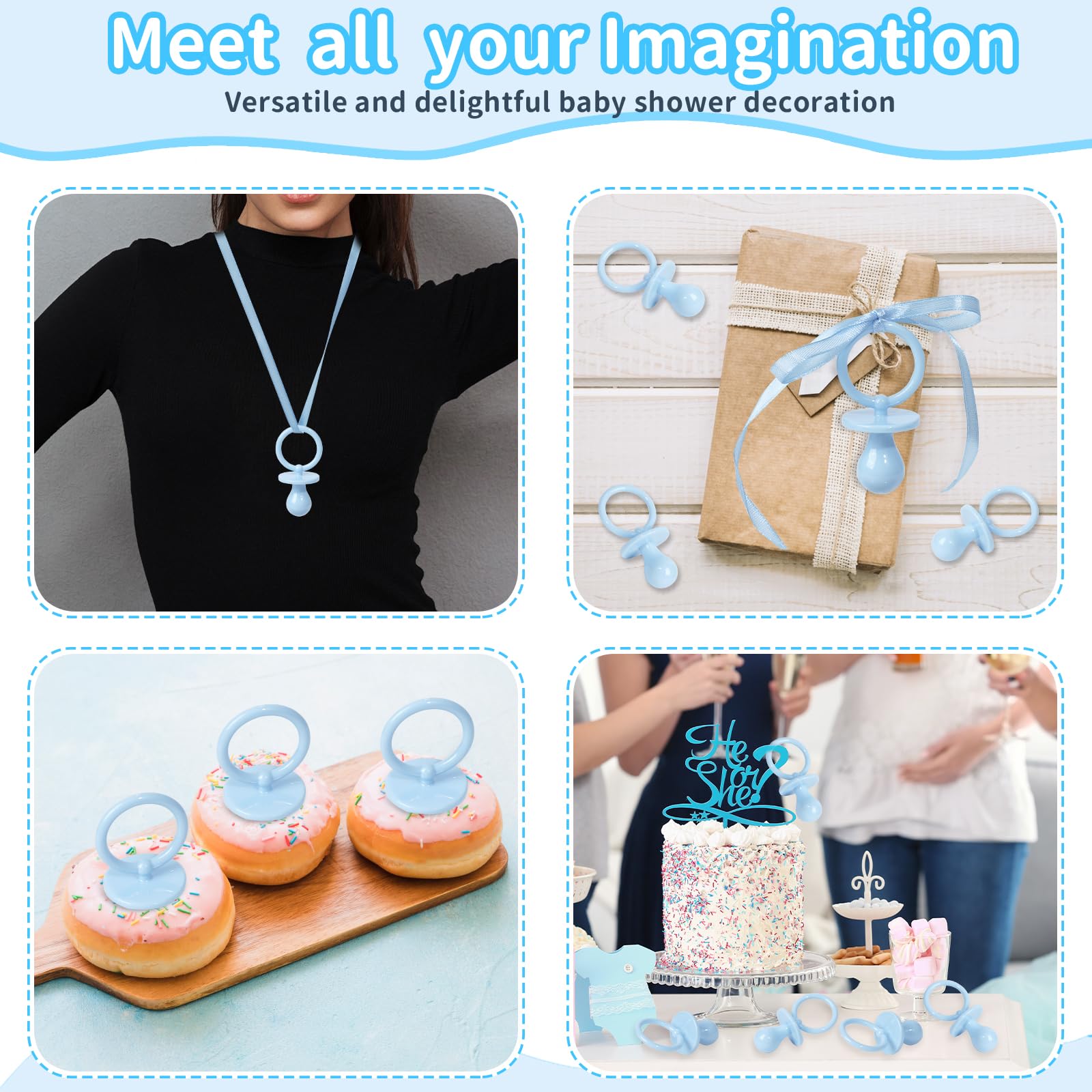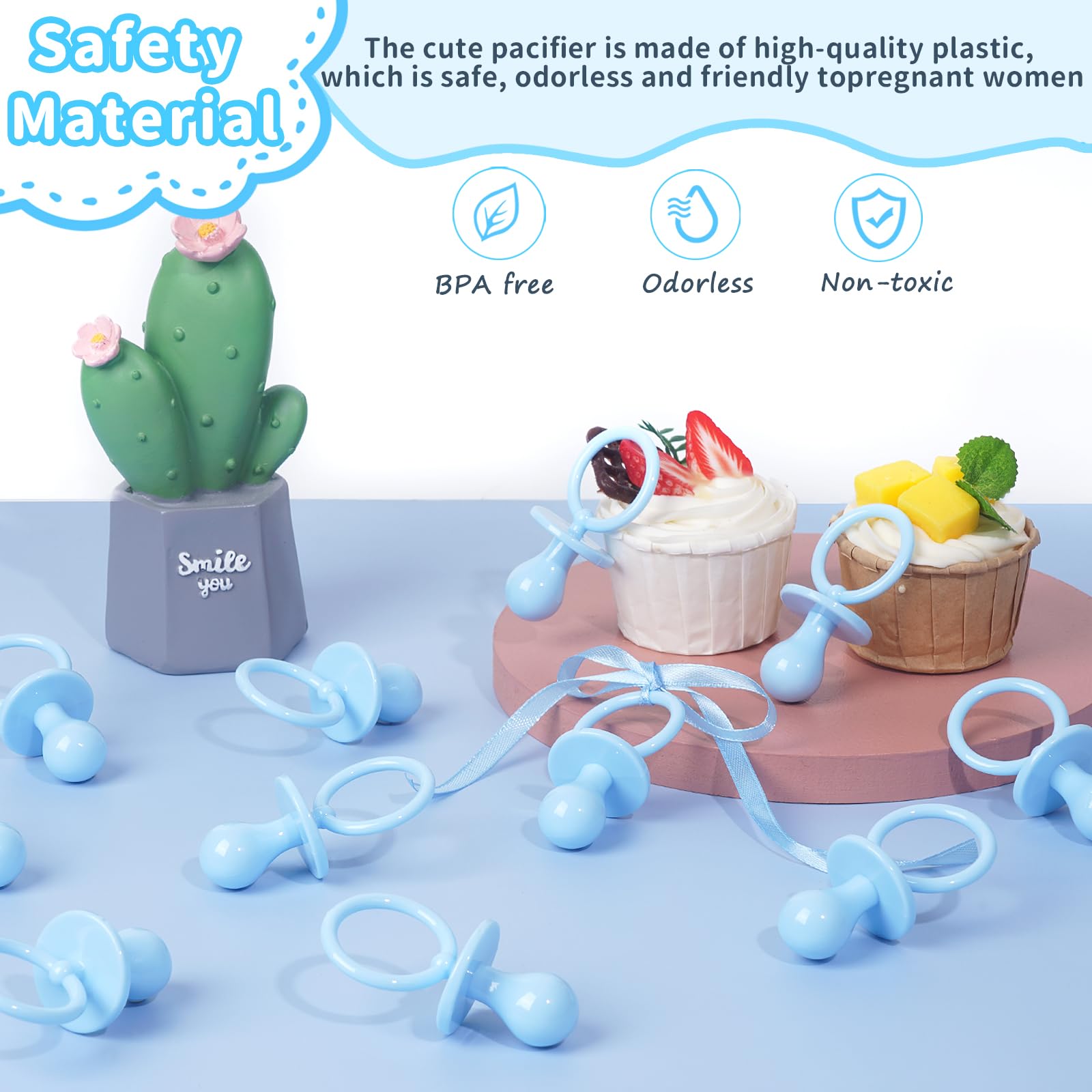 Super Cute Pacifiers - You'll get 50 plastic pacifiers for baby shower game boy measuring 1.4 X 2.75 inches. That's enough to sprinkle some on each table or pass out to guests! Reliable Material - These baby shower pacifiers are made of high-quality plastic material, which is smooth, durable, and odor-free. Safe to wear on the body Designed for Baby Celebrations - The delicate and cute pacifier shape design is perfect for baby shower parties and other baby-themed parties. Just sprinkling it there can also add charm to your party Your Exclusive Crafts - The ring at the bottom of the plastic pacifiers baby shower game allows the ribbon to be threaded through, making it easier to make bracelets or decorate goodie bags. Hand them out as gifts to share the joy and warmth with your guests Not Just for Decoration - The blue pacifiers for baby shower are also perfect for gender reveal and pacifier hunt baby shower game, which is sure to be the most exciting and memorable part of the party!