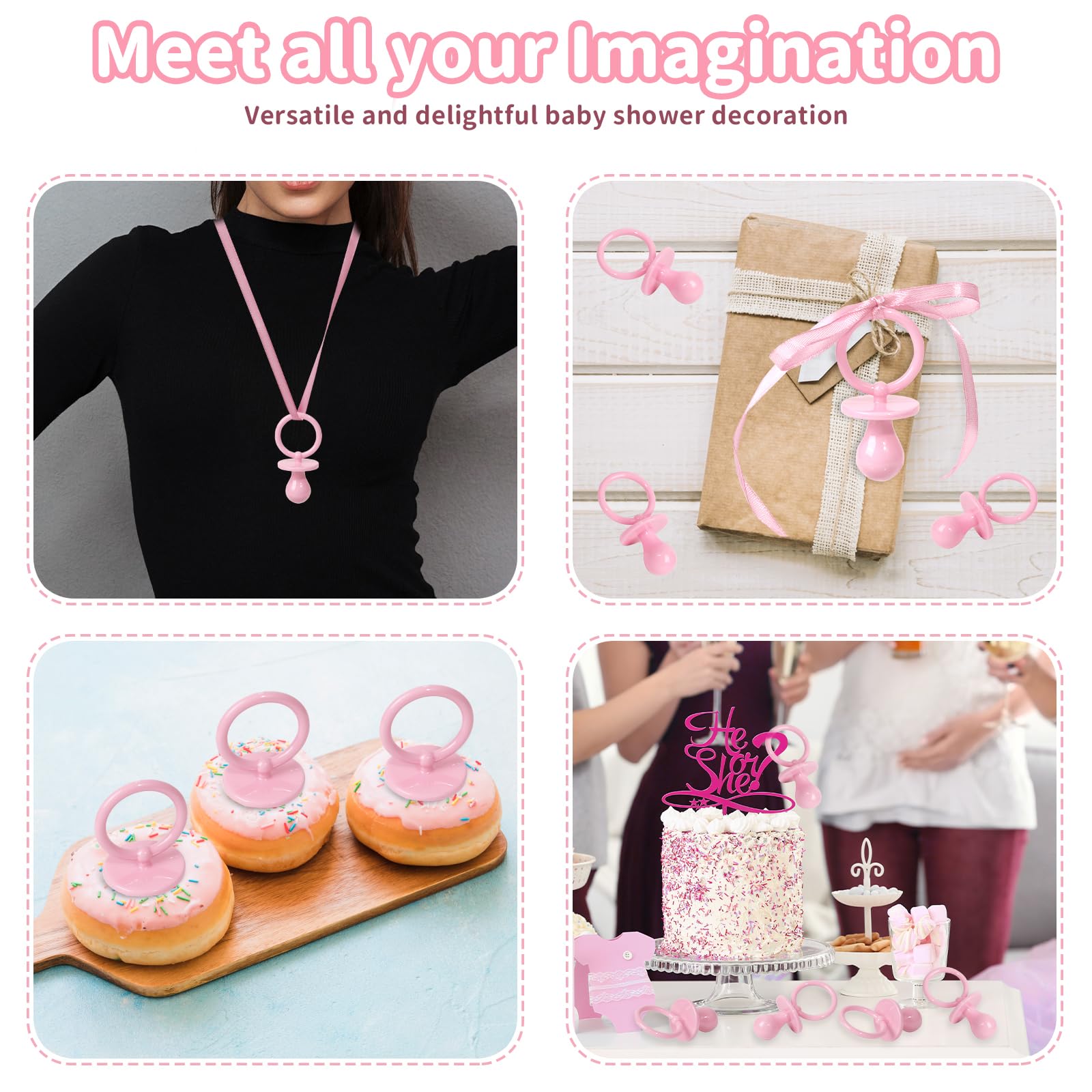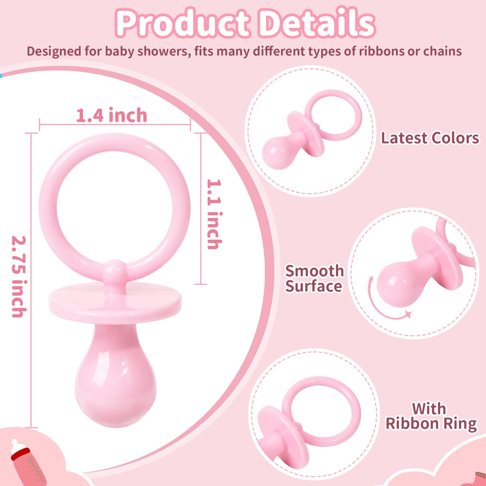 • Q: Can these pacifiers be used for decoration? A: Yes, they are designed for baby showers and other baby-themed parties, adding charm to your decorations.
