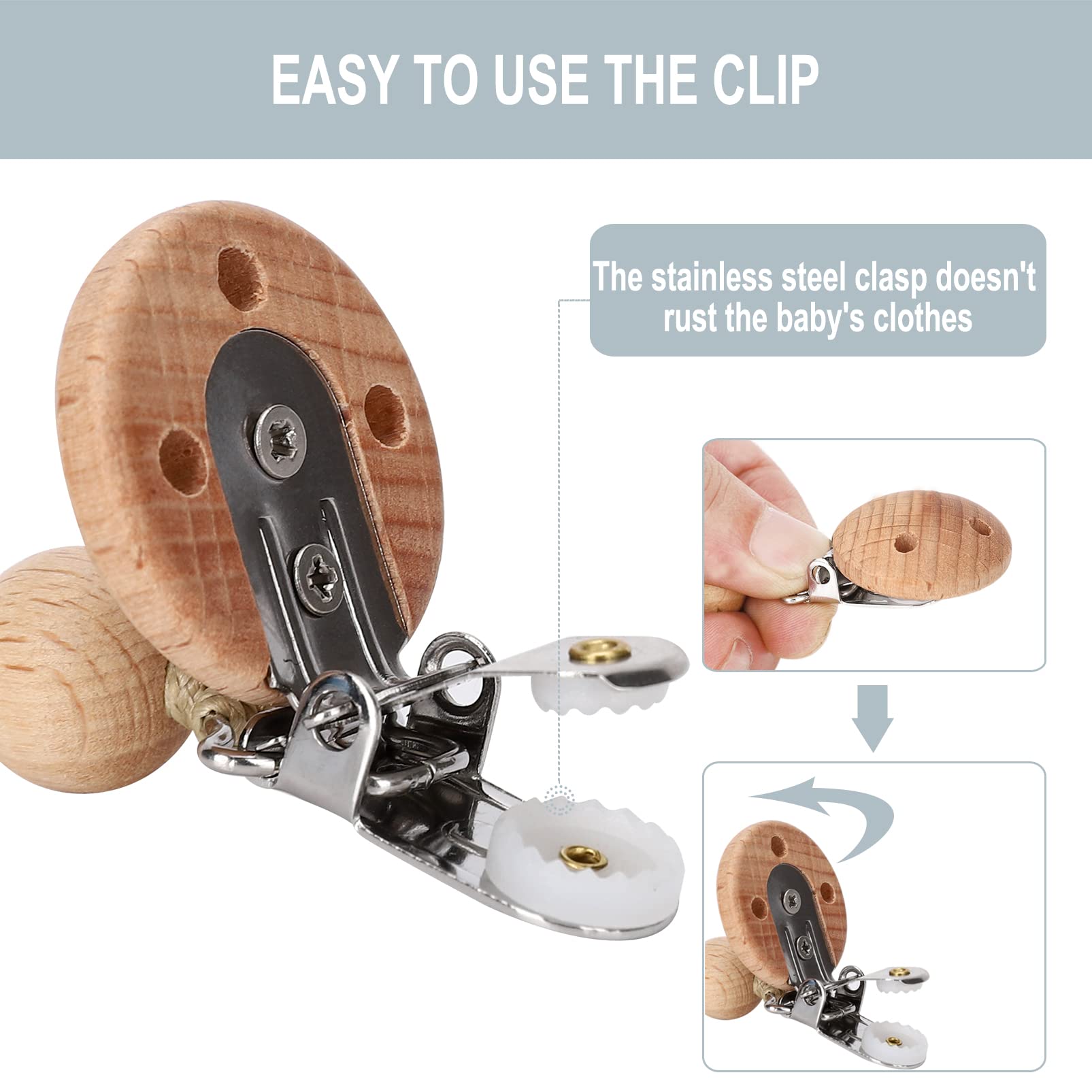 • Q: Are the pacifier clips easy to clean? A: Yes, the pacifier clips can be cleaned by hand using mild soap and water. It is recommended to let them air dry and avoid putting them in the dishwasher.