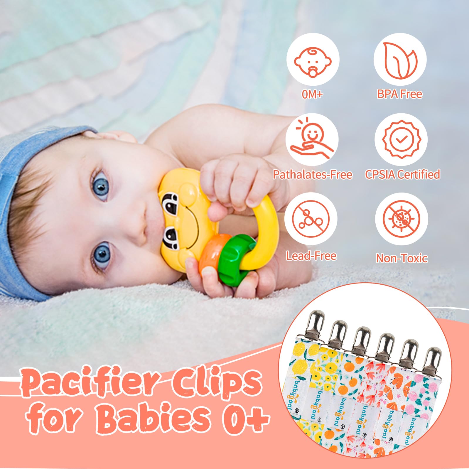 Babygoal Girl Pacifier Clips, 6 Pack Pacifier Holder For Boys And Girls Fits Most Pacifier Styles & Baby Teething Toys And Baby