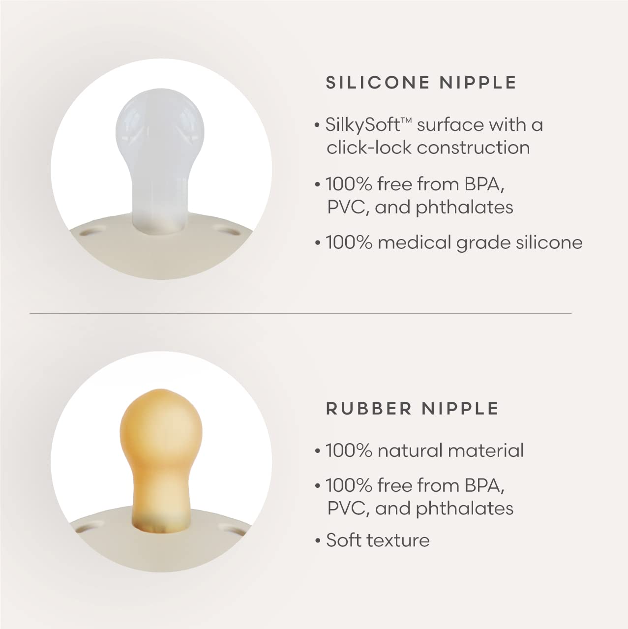 • Q: What materials are used in the Frigg pacifier? A: The pacifier features a SilkySoft nipple made from 100% medical grade silicone and is free from BPA, BPS, PVC, and phthalates.