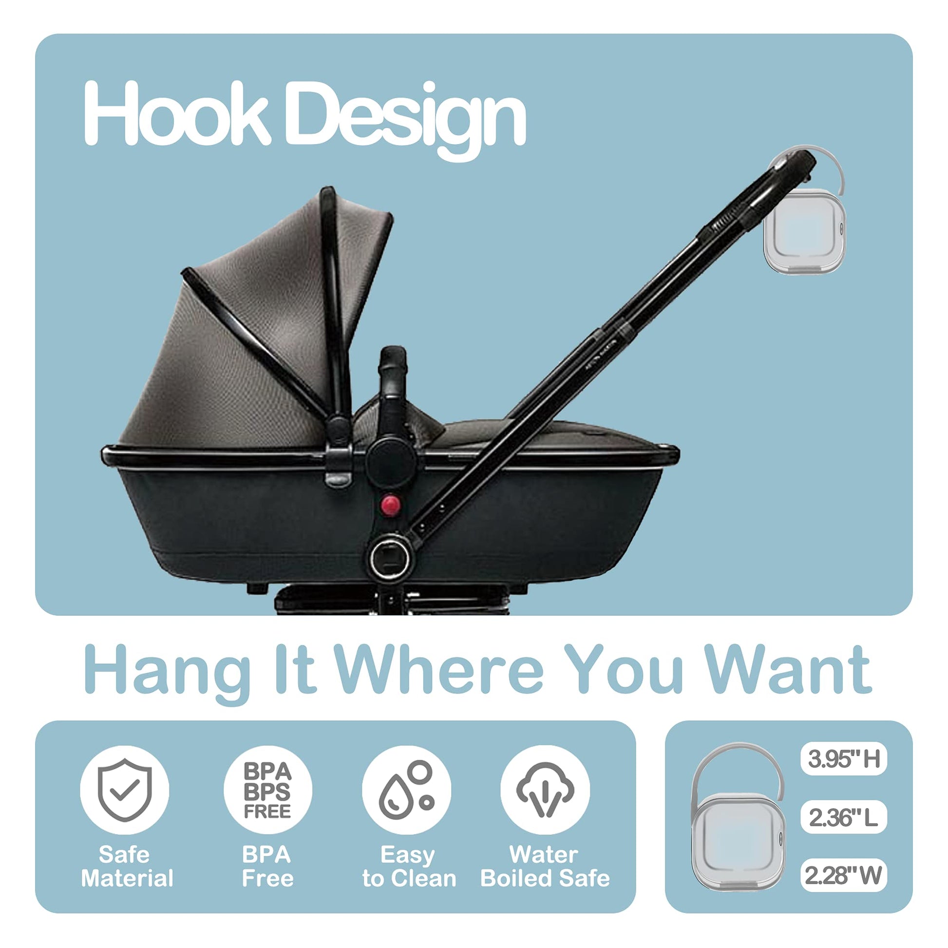 - Q: What colors are available for the LANEYLI Pacifier Case? A: The LANEYLI Pacifier Case is available in a blue hook design, which is both attractive and functional.