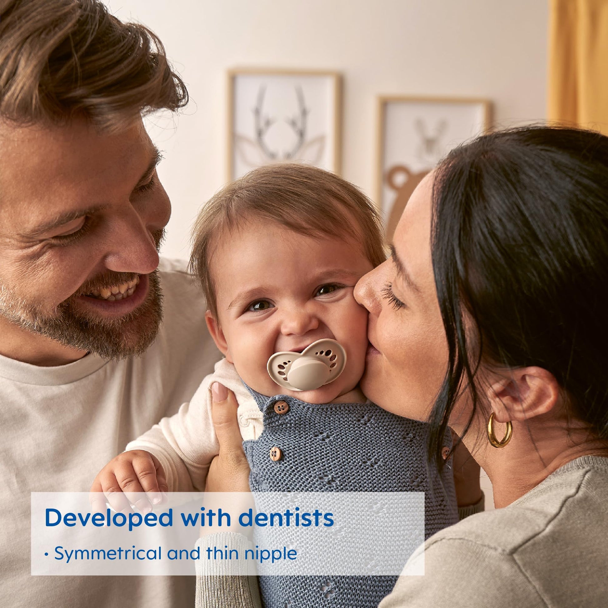 • Q: What makes the nipple shape of MAM pacifiers unique? A: The nipple shape is symmetrical, which means there is no 'right side up' for the pacifier, allowing for fuss-free use and ensuring proper fit under your baby's nose.