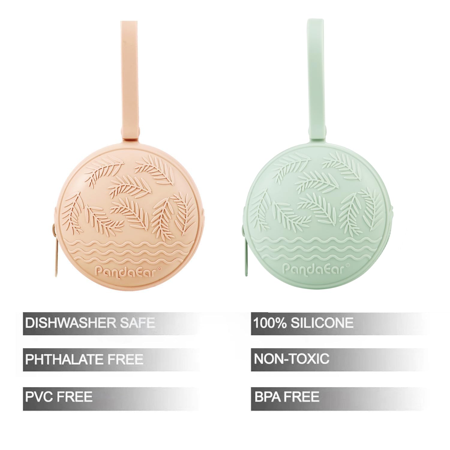 - Q: What is included in the PandaEar Pacifier Holder Case Set? A: The PandaEar Pacifier Holder Case Set includes 4 baby pacifier cases: 2 silicone pacifier cover bags and 2 transparent pacifier storage container boxes.