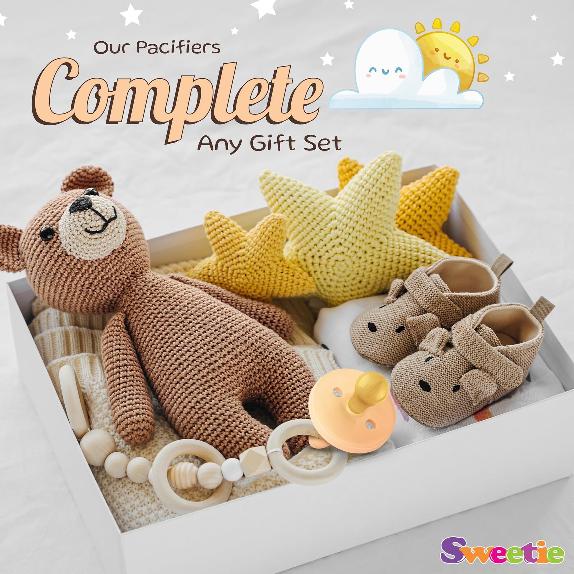 • Q: How is the SWEETIE Rubber Pacifier designed for hygiene? A: It is uniquely hygienic and strong, made from a single piece with no joints or cracks where dirt and bacteria can accumulate.