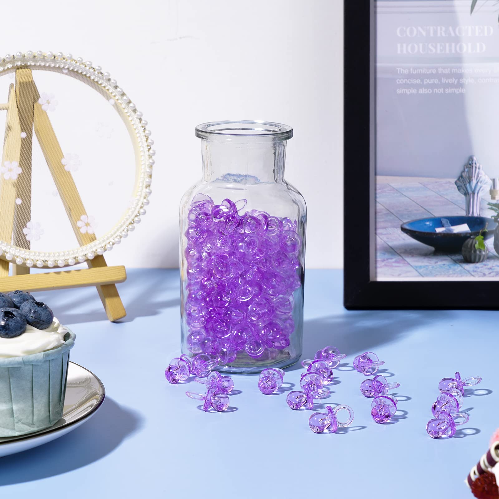 - Q: How many pacifiers come in a pack? A: Each pack contains 150 mini acrylic baby pacifiers.