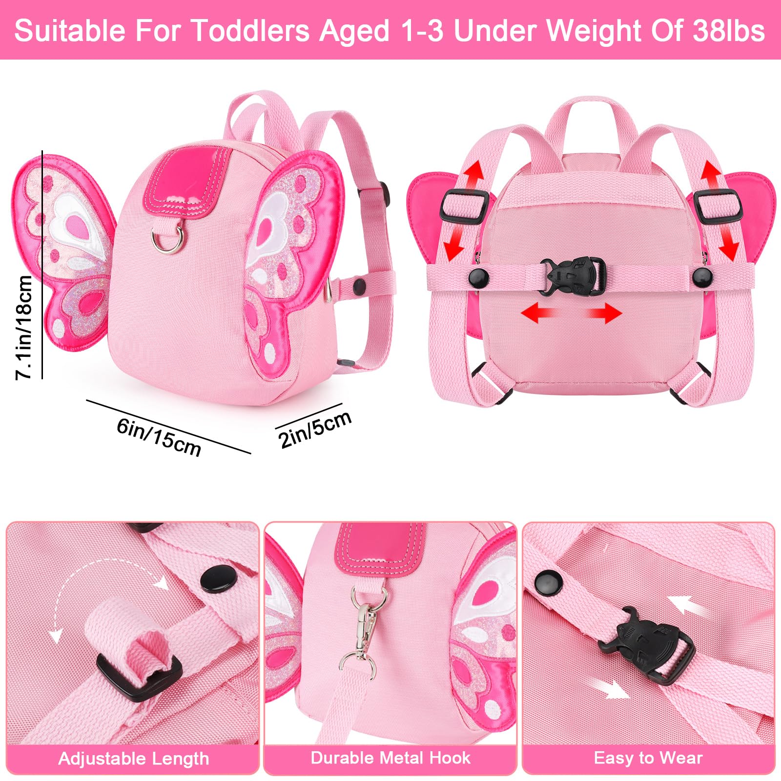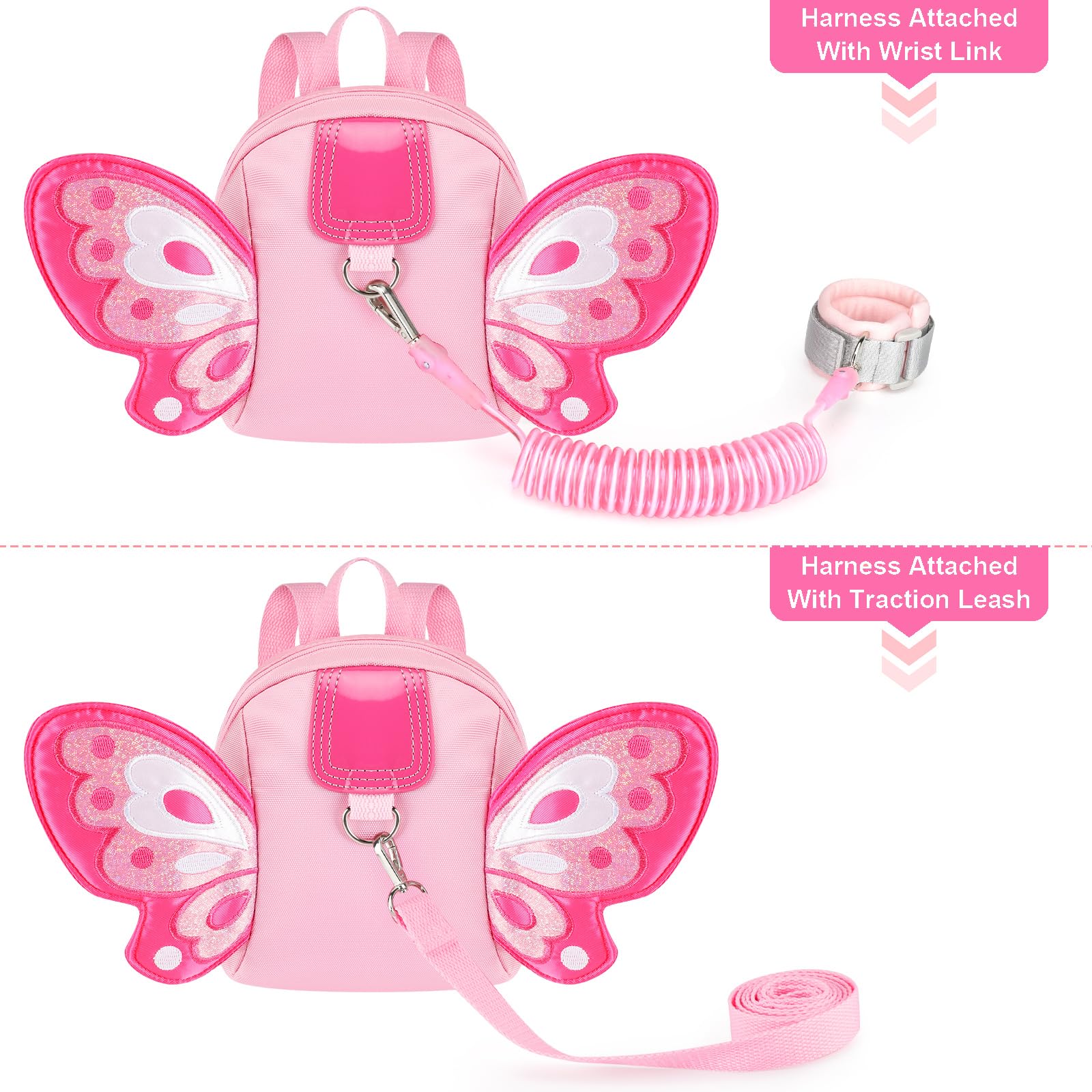 - Q: What is included in the package when purchasing this backpack? A: The package includes the butterfly kids backpack harness, a removable toddler leash, and an anti-lost wrist link.