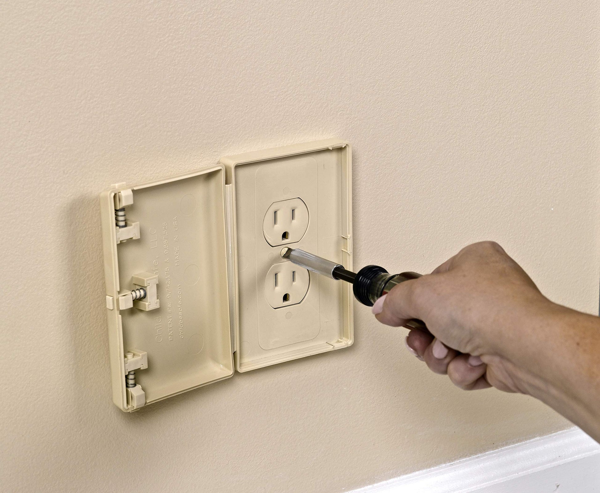 - Q: How does the Child Be Safe electrical safety cover work? A: The Child Be Safe safety cover clicks closed over the outlet, preventing children from accessing it. To open, adults must press all three side buttons simultaneously, a task that young children under five cannot perform.