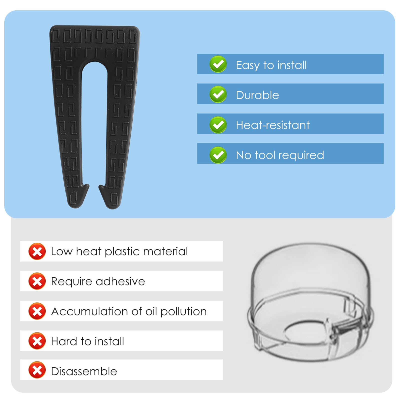 - Q: What is the application range for these knob locks? A: These knob locks are designed for push-turn knob configurations only, and the knob panel surface must be flat. Please ensure your stove meets these requirements.