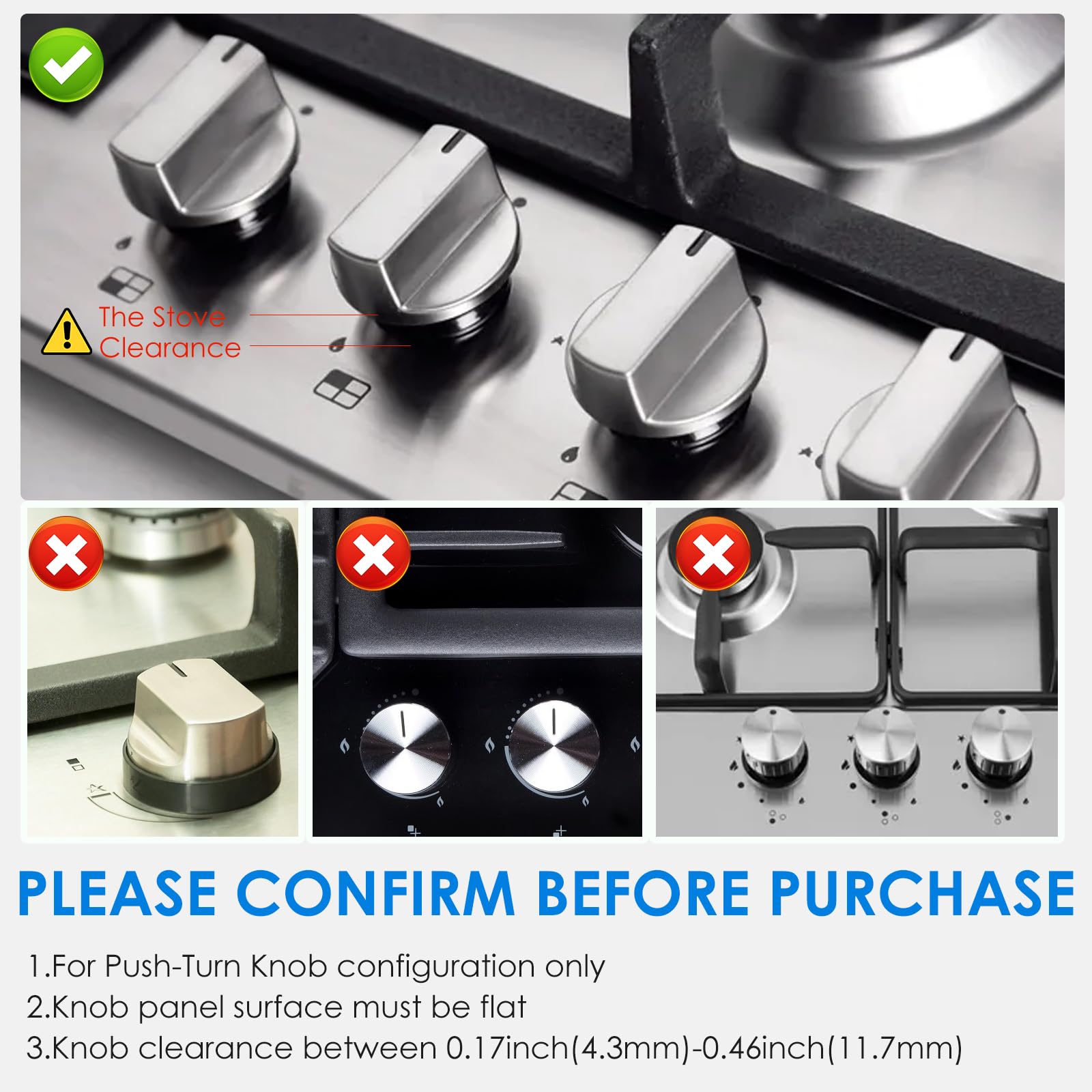 - Q: Can these knob locks be used with all types of stoves? A: No, these knob locks are suitable only for stoves with a knob clearance between 0.17 inches and 0.46 inches.