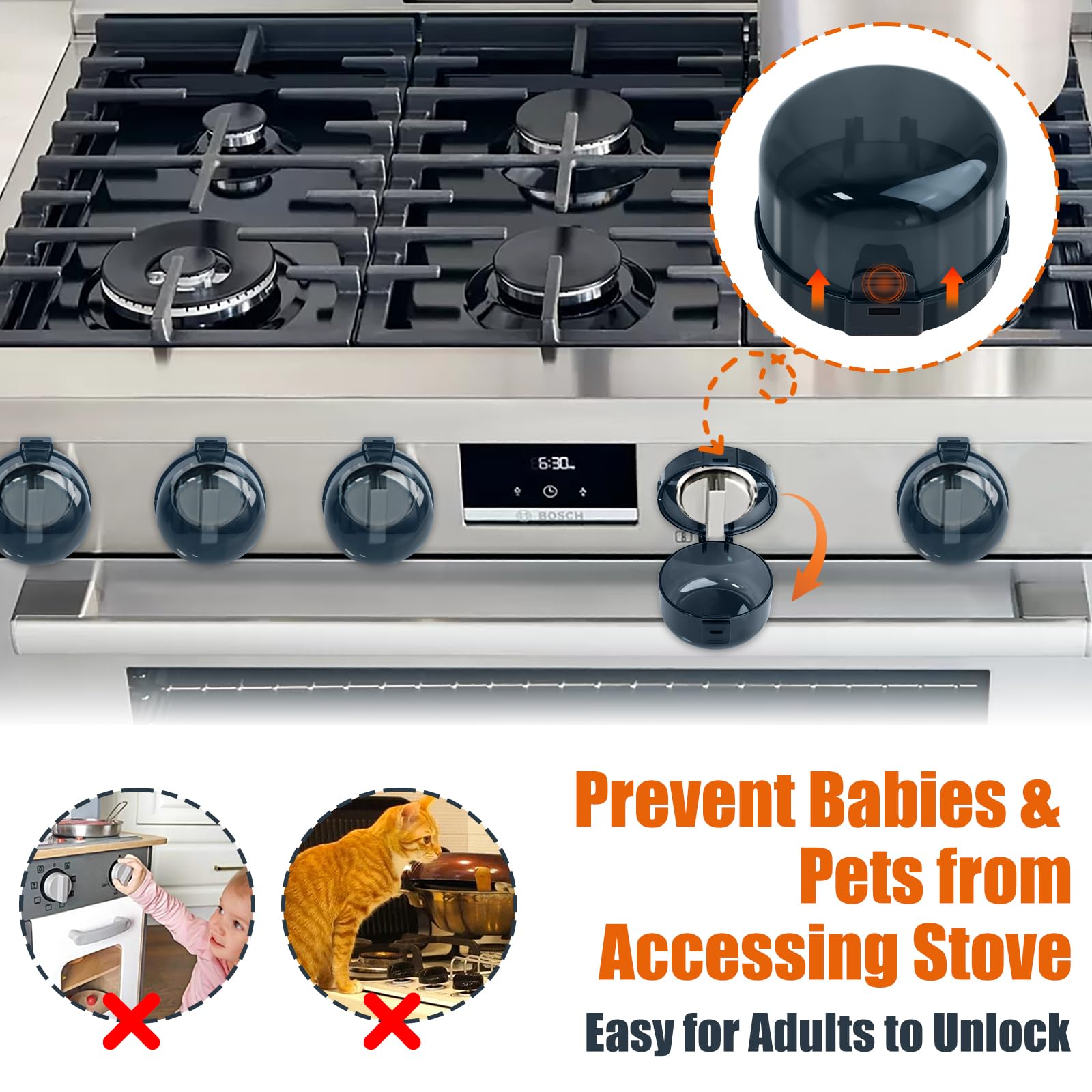 - Q: Are the Stove Knob Safety Covers child-proof? A: Yes, these covers are designed to be child-proof, effectively locking onto the stove knobs to prevent accidental turning by curious little hands.