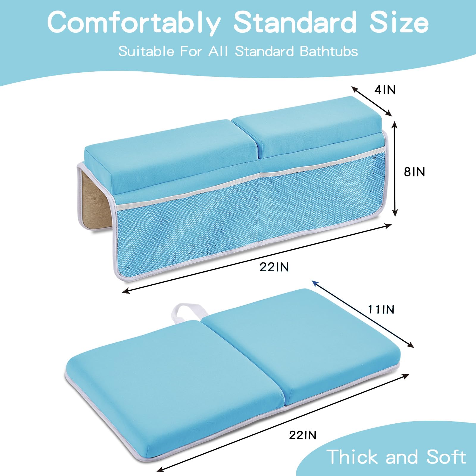 - Q: Are there any storage features included in this product? A: Yes, the bath kneeler is equipped with four side pockets, two of which are mesh to prevent water accumulation, allowing you to store shower toys and other bath essentials conveniently.