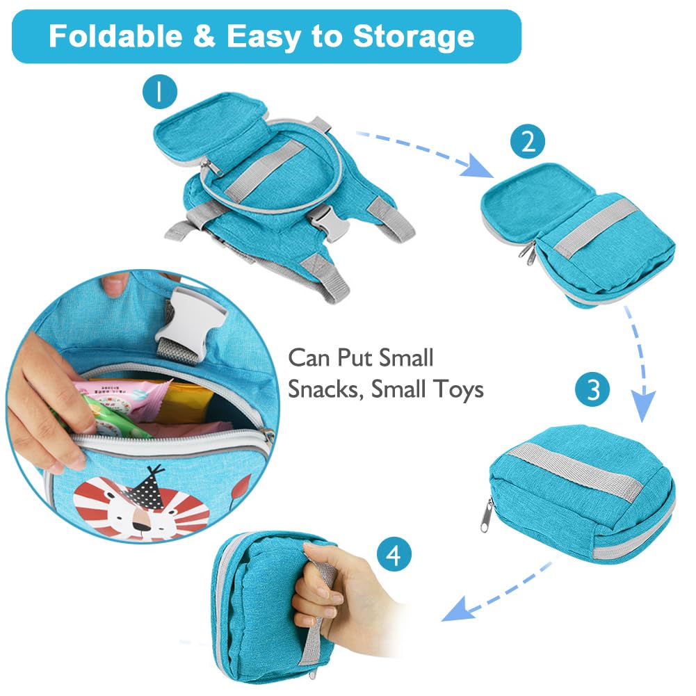 - Q: What is included in the package? A: The package includes one toddler harness (styled as a lion), one anti-lost wrist link (in blue), and one baby leash.