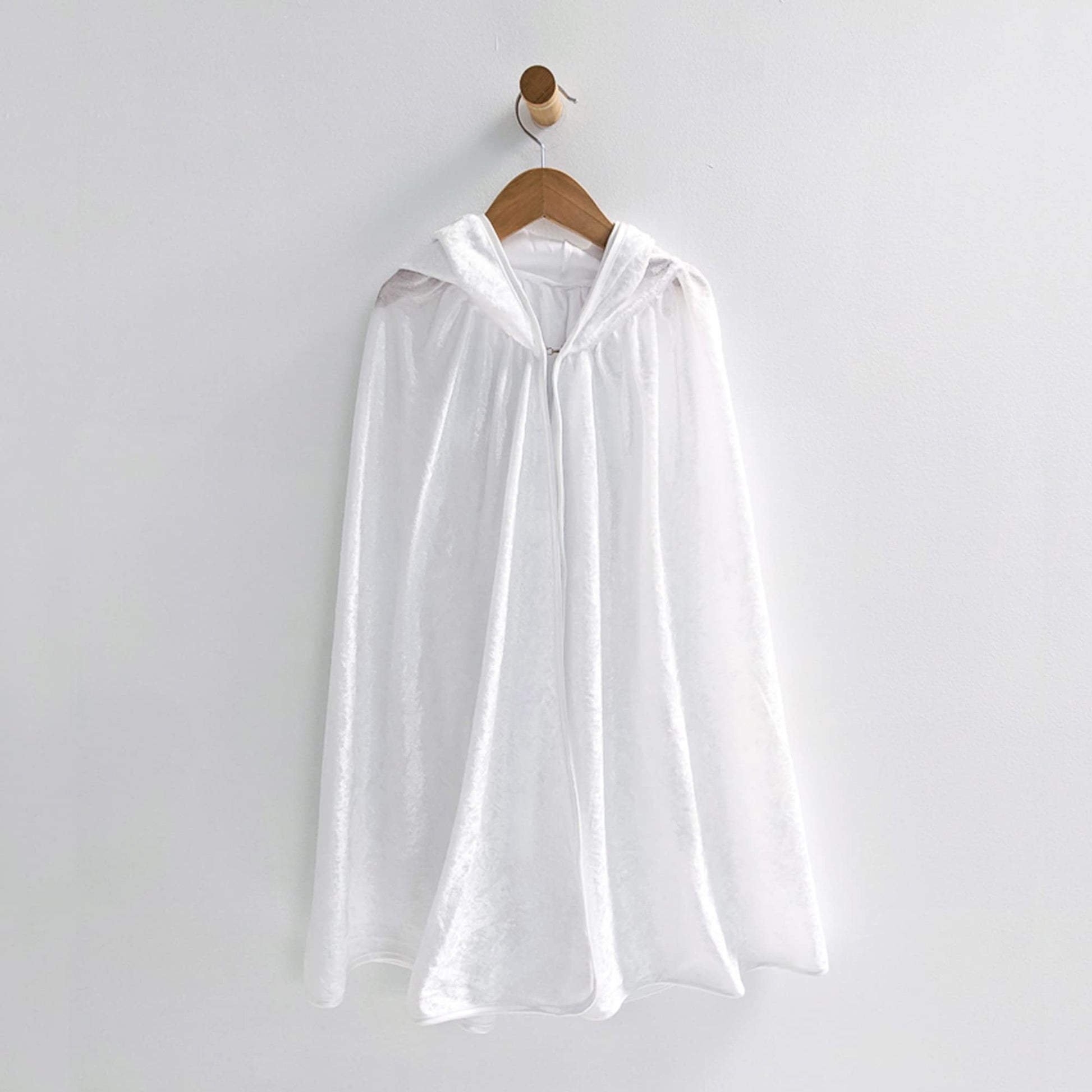 - Q: How long is the hooded cape? A: The hooded cape measures 30 inches in length.