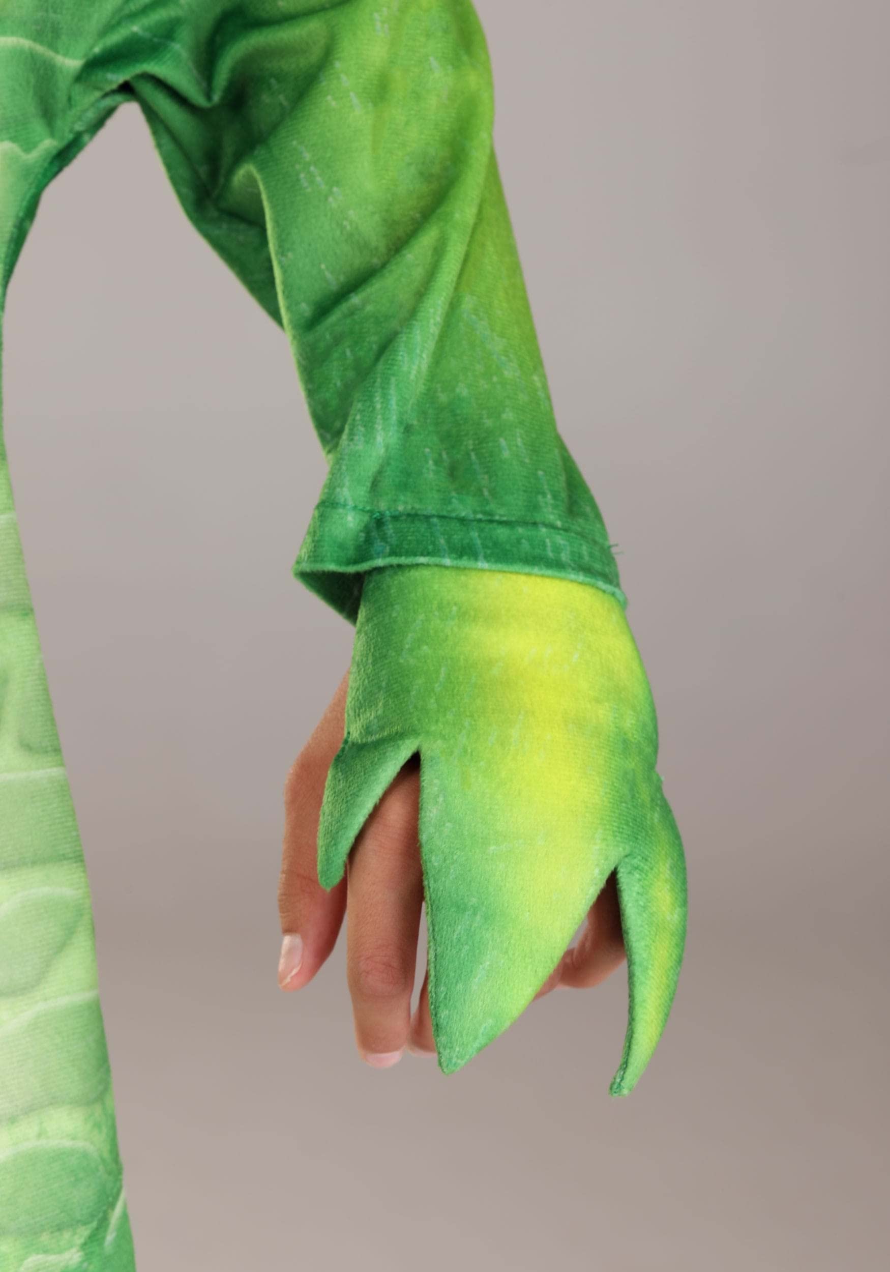- Q: Does the costume feature any special design elements? A: Yes, the costume features a realistic all-over print design that mimics Rex's tough skin, along with a soft sculpted 3D hood.