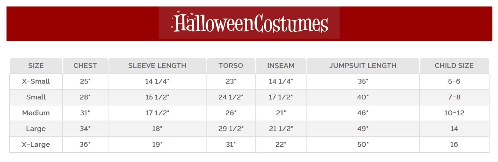 - Q: What sizes are available for the Fun Costumes Kid's Crab Costume? A: The Fun Costumes Kid's Crab Costume is available in sizes XS, S, M, L, and XL. The size chart includes XS with a chest measurement of 23 inches, torso of 21 inches, and jumpsuit length of 33 inches; S with a chest of 28 inches, torso of 24 inches, and jumpsuit length of 40 inches; M with a chest of 31 inches, torso of 26 inches, and jumpsuit length of 46 inches; L with a chest of 34 inches, torso of 29 inches, and jumpsuit length of 49 inches; and XL with a chest of 36 inches, torso of 31 inches, and jumpsuit length of 50 inches.