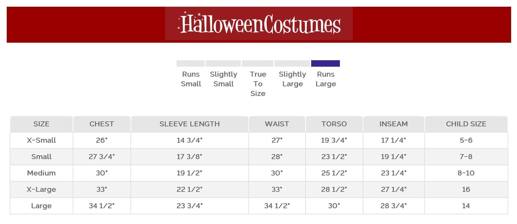 - Q: How does the sizing chart work for the Tangled Pascal Costume? A: The sizing chart includes measurements for chest, sleeve length, torso, and inseam for each size to help you select the right fit for your child.