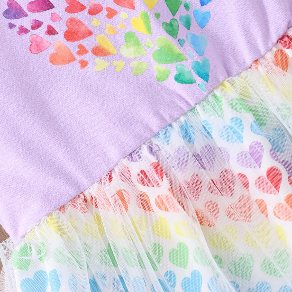- Q: Does this dress have a unique design? A: Yes, it features a cute cartoon print with designs like rainbows, butterflies, and unicorns, along with flutter sleeves.