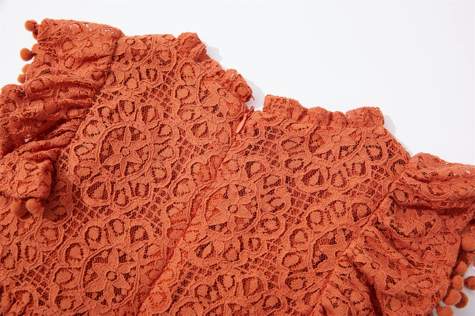 - Q: What is the style of the dress? A: The dress features an elegant vintage style with a lace layer, pom pom details on the sleeves, and a ruffle around the neck, making it perfect for a little princess.