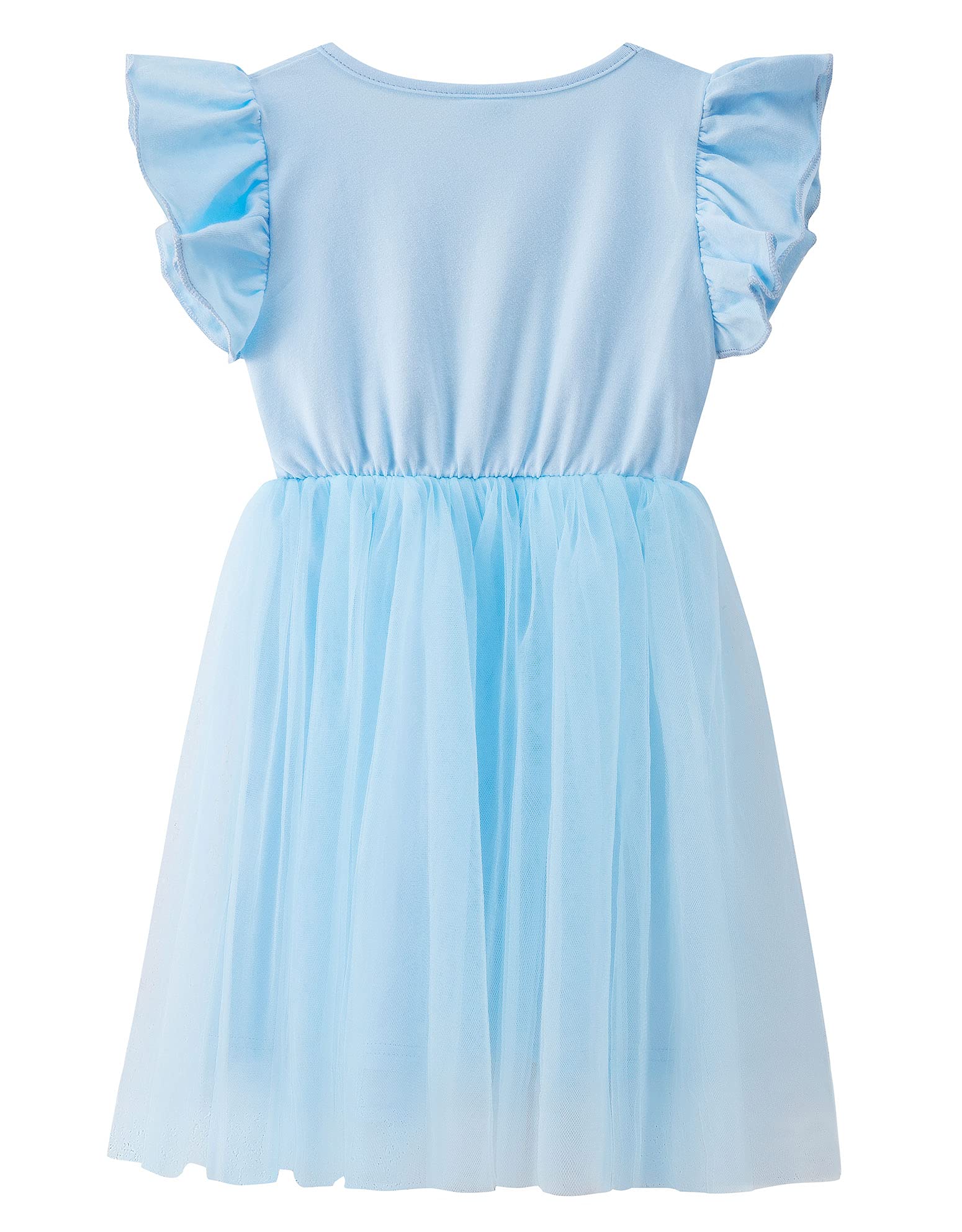 - Q: Does the dress have any special design features? A: Yes, the dress features flutter and ruffle sleeves, providing a cute and stylish look, along with two layers of tulle and one cotton layer for added volume.