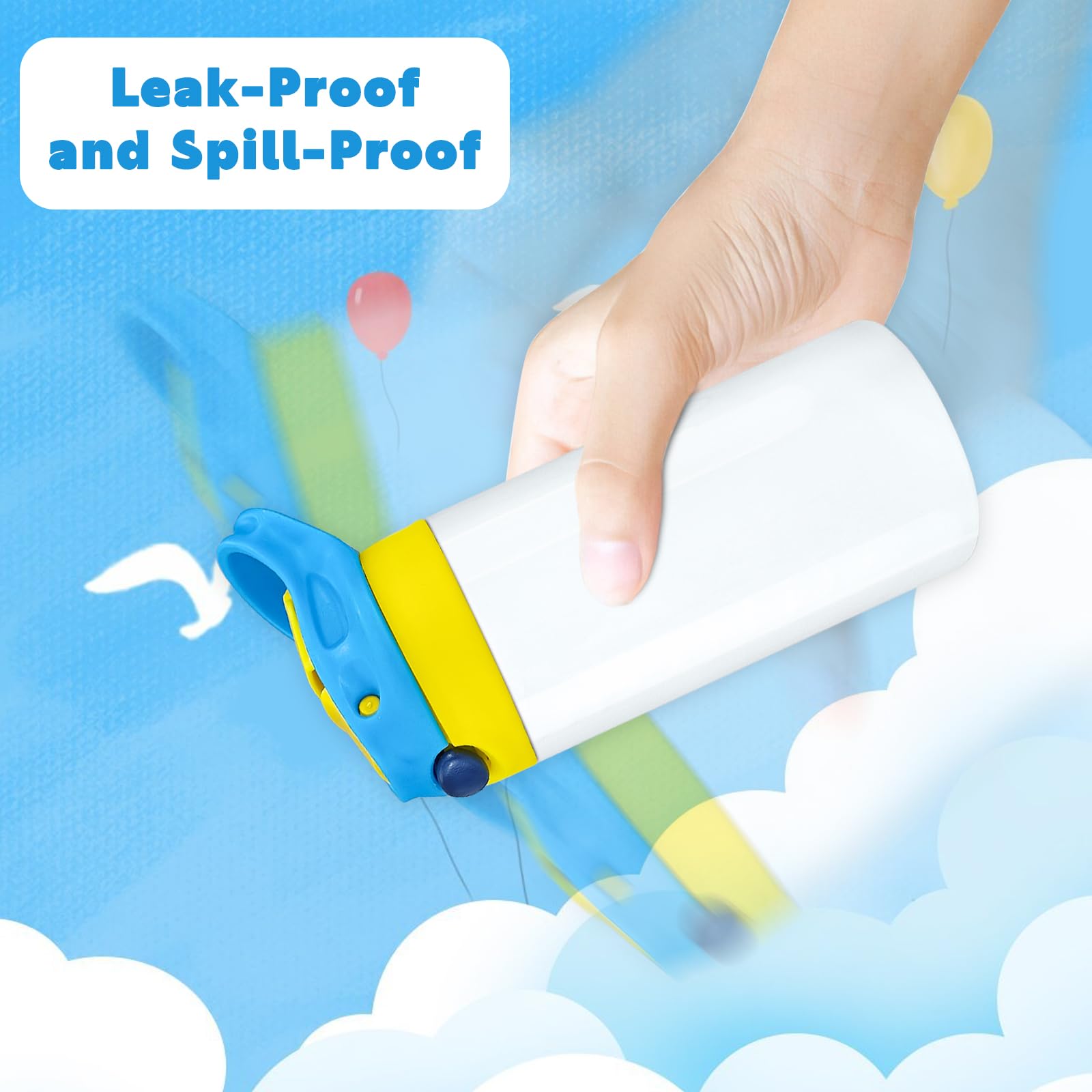 - Q: How does the leak-proof feature work? A: The lid features a pop-up straw design that securely holds the straw in place, preventing leaks while allowing easy drinking for children.
