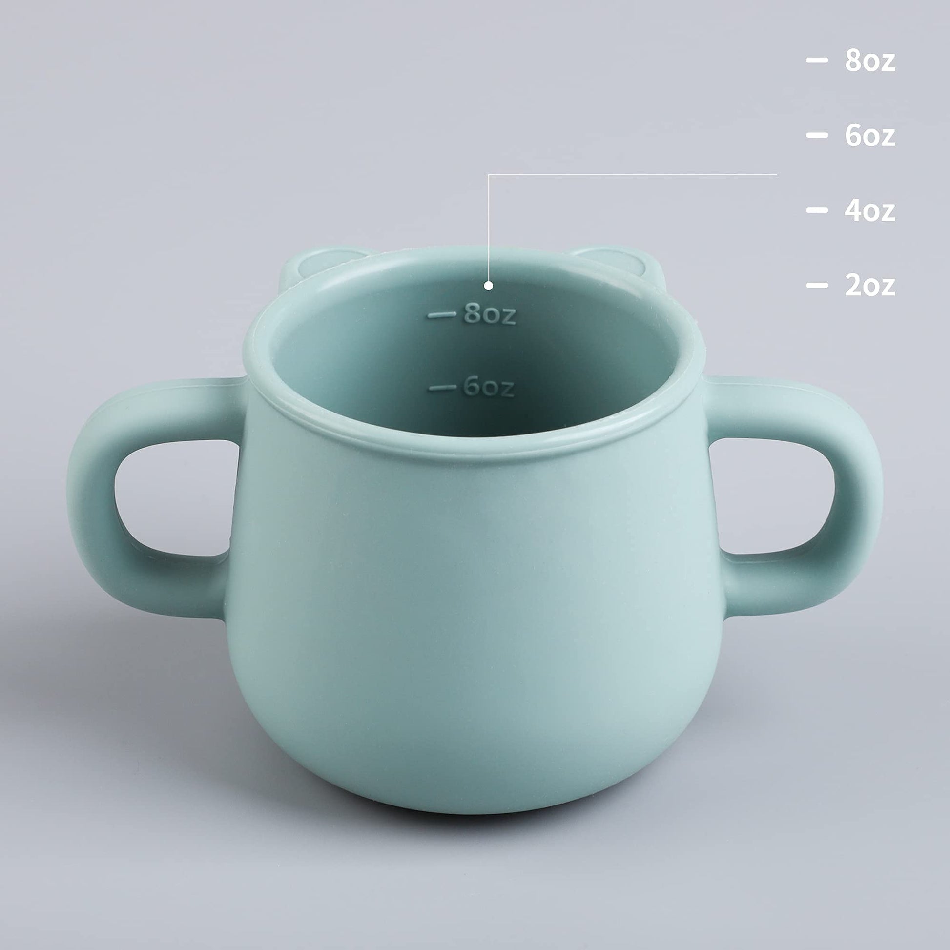 Introducing open baby cups at 6-12 months can help children develop the oral motor skills and independent drinking skills needed to transition away from a bottle or sippy cup. Our baby and toddler cups are made in Korea from soft, flexible and durable food-grade silicone that is gentle on a baby's gums and teeth and nearly unbreakable. It features easy-to-grip handles, a wide base for stability, and liquid volume markers so you can add the perfect amount each time. And because we think it will be one of your child's favorite cups, we've designed it to be easy to clean, dishwasher safe, and last for years to come.